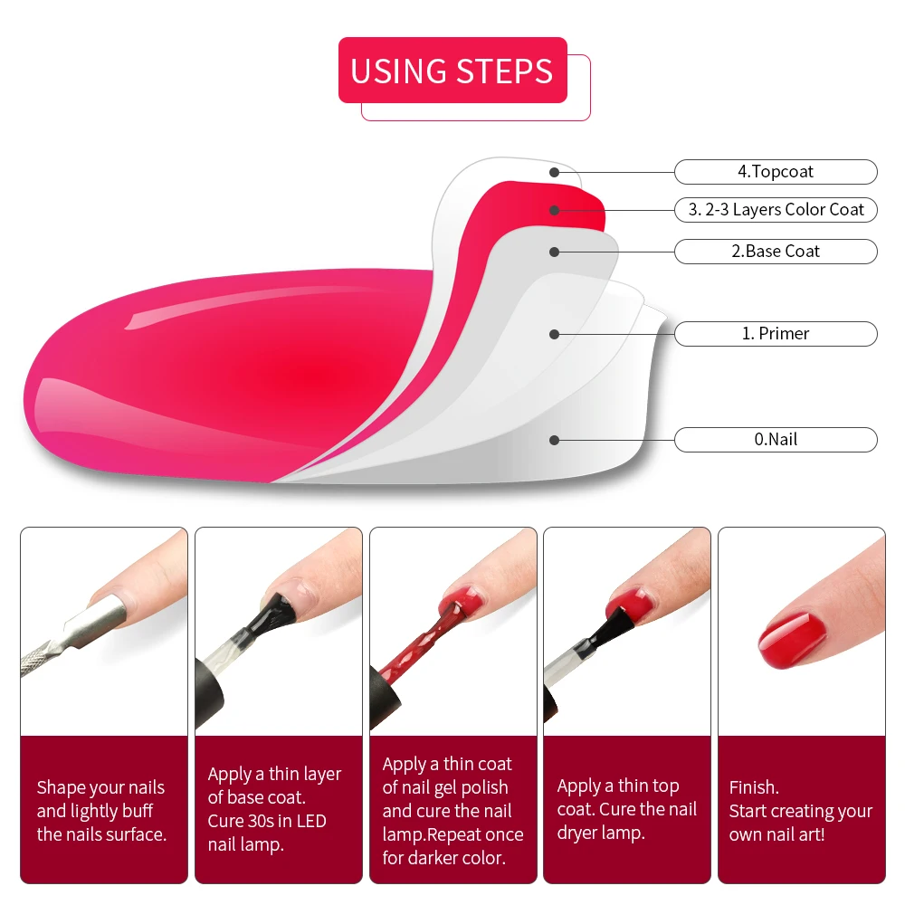 1.-образная поверхность ногтя, очистите кутикулы, для полировки ногтей поверхность и очистите пыль.
