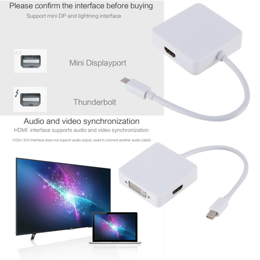 Особенности: Этот продукт с тремя выходными портами, и вы можете выбрать один из них для использования в то время, как вы требуете, функции порта в соответствии с следующим: Выход DVI, подключите устройства DVI с помощью кабеля DVI. Выход HDMI, подключите устройства HDMI с помощью кабеля HDMI. Выход VGA, подключите устройства VGA с помощью кабеля VGA. Mini Display Port, connect Mac Book, Mac Book Pro или Mac Book Air. Sup порт мини-дисплей порт 1.1a двухрежимный вход. HDMI может поддерживать аудиовыход Для iMac (конец 2009) и Mac Book Pro (Mid 2010) Поддержка HDMI/DVI/VGA выход с максимальным разрешением 1920x1080p60Hz, 225 МГц/2,25 Гбит/с на канал (6,75 Гбит/с все каналы), 12 бит на канал (36 бит все каналы) глубокий цвет. Автоматическое обнаружение дисплея путем подключения и отключения. Питание от источника порта мини-дисплея. Характеристики: Входной сигнал: мини-порт 1.1a Выходное видео: HDMI/DVI/VGA Вход: мини-display Port Male 20pin Выход: HDMI Женский Тип A 19pin Разъем: DVI Female (24 + 1) VGA Female 15pin Вертикальный диапазон частот: 50/60 Гц Полоса пропускания усилителя видео: 2,25 Гбит/с/225 МГц HDMI/DVI/VGA:480i/480p,576p,720p,1080i/1080p Внешний источник питания: внешний источник питания не требуется Как использовать: Продукт легко и удобно использовать, с тремя выходными портами s:DVI VGA HDMI и мини-дисплеем. И вы можете использовать один из них одновременно по вашему требованию, когда вы хотите использовать выход DVI, вам просто нужно подключить устройства DVI с помощью кабеля DVI. И когда вы хотите использовать выход HDMI, вам просто нужно подключить устройства HDMI с помощью кабеля HDMI. Когда вы хотите использовать выход VGA, вам просто нужно подключить устройства VGA с помощью кабеля VGA. Мини-порт meed для подключения Mac Book, Mac Book Pro или Mac Book Air. Совместимые модели: Поддерживаются Mac Book Air, Mac Book Pro, iMac и Mac mini с портами thunderbolt с 2011 года. Также поддерживаются Mac Book Air, Mac Book Pro, iMac и Mac mini или PC с мини-дисплеем. MS Microsoft surface pro 3 2 1 Примечание: Вы должны убедиться, что если ваш Mac имеет один из следующих двух видов портов: порт mini DP и Порт Thunderbolt Посылка включает в себя: 1 xMini dp к HDMI/VGA/DVI кабель адаптера
