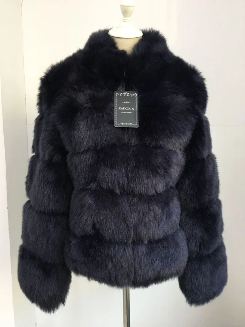 Толстое теплое зимнее пальто ZADORIN 2021, роскошная женская куртка шуба из искусственного лисьего меха размера плюс с воротником-стойкой и искусственным мехом, верхняя одежда