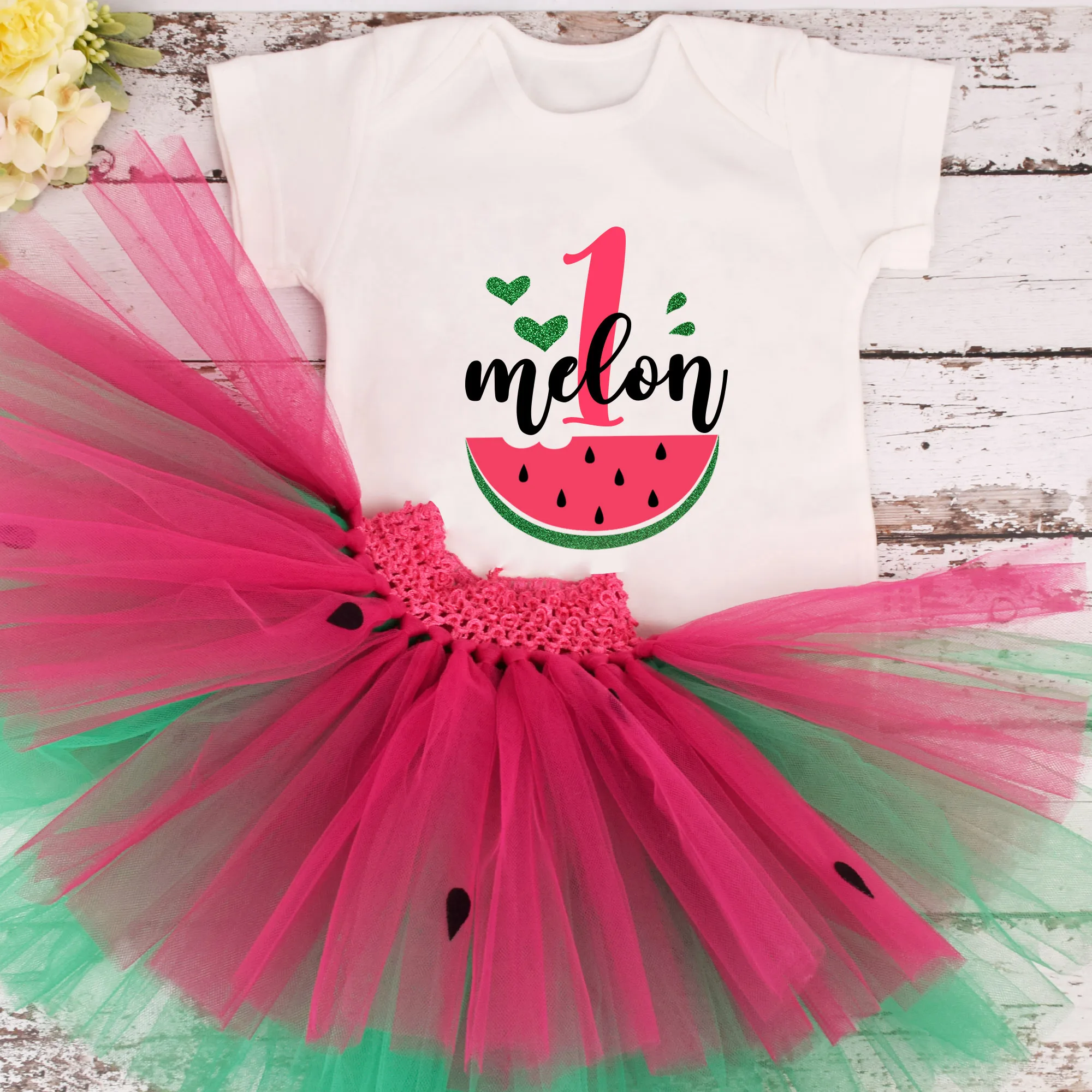 Этот список предназначен для одного комплекта одежды с юбкой-пачкой арбуза. Этот костюм отлично подходит для фотосессии и дня рождения Вашей маленькой девочки!