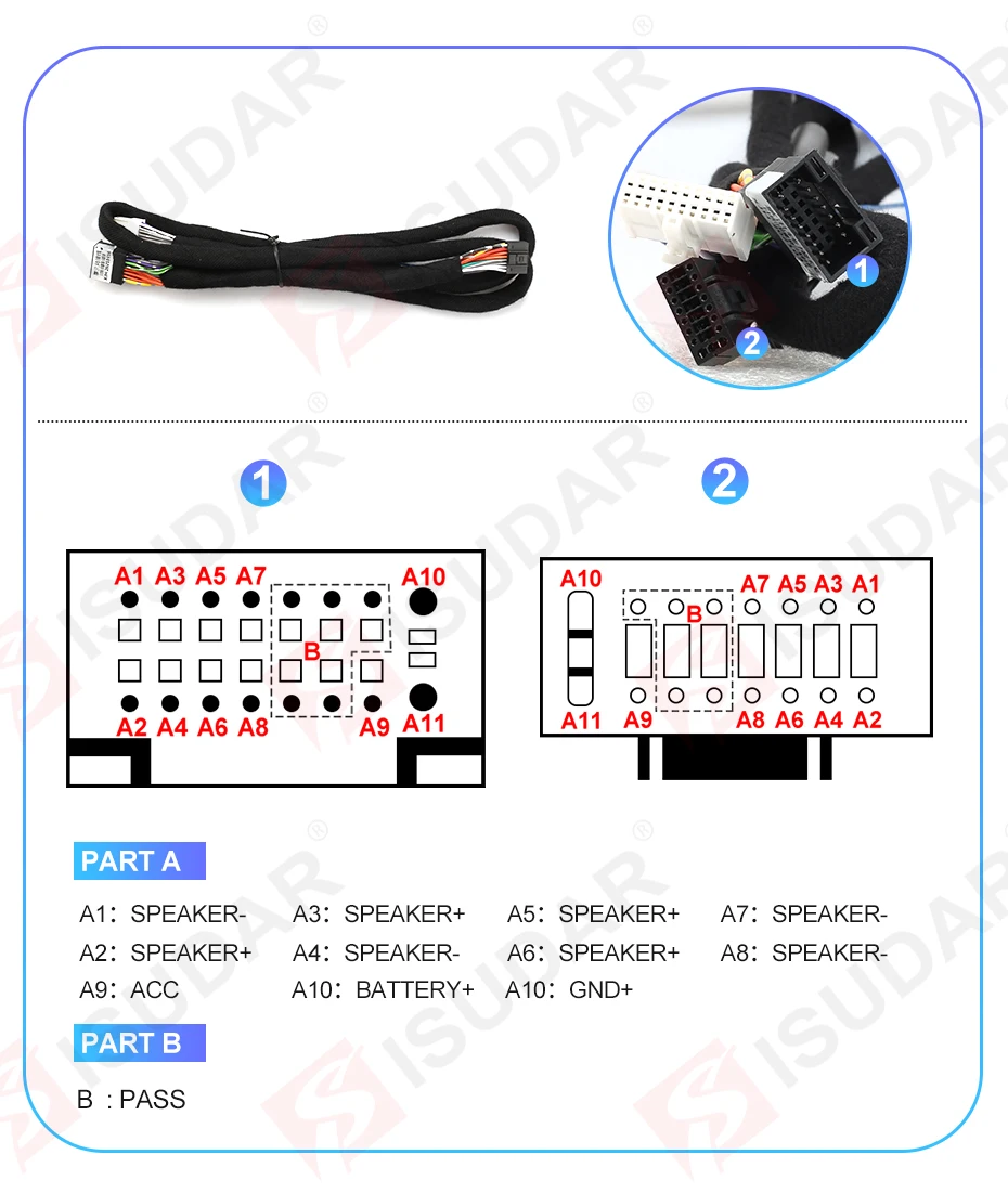 Со специальным кабелем ISO, при заказе, пожалуйста, сообщите нам свою модель автомобиля, мы отправим вам кабель, который подходит для вашего автомобиля. В противном случае мы можем предоставить вам только универсальный кабель.
