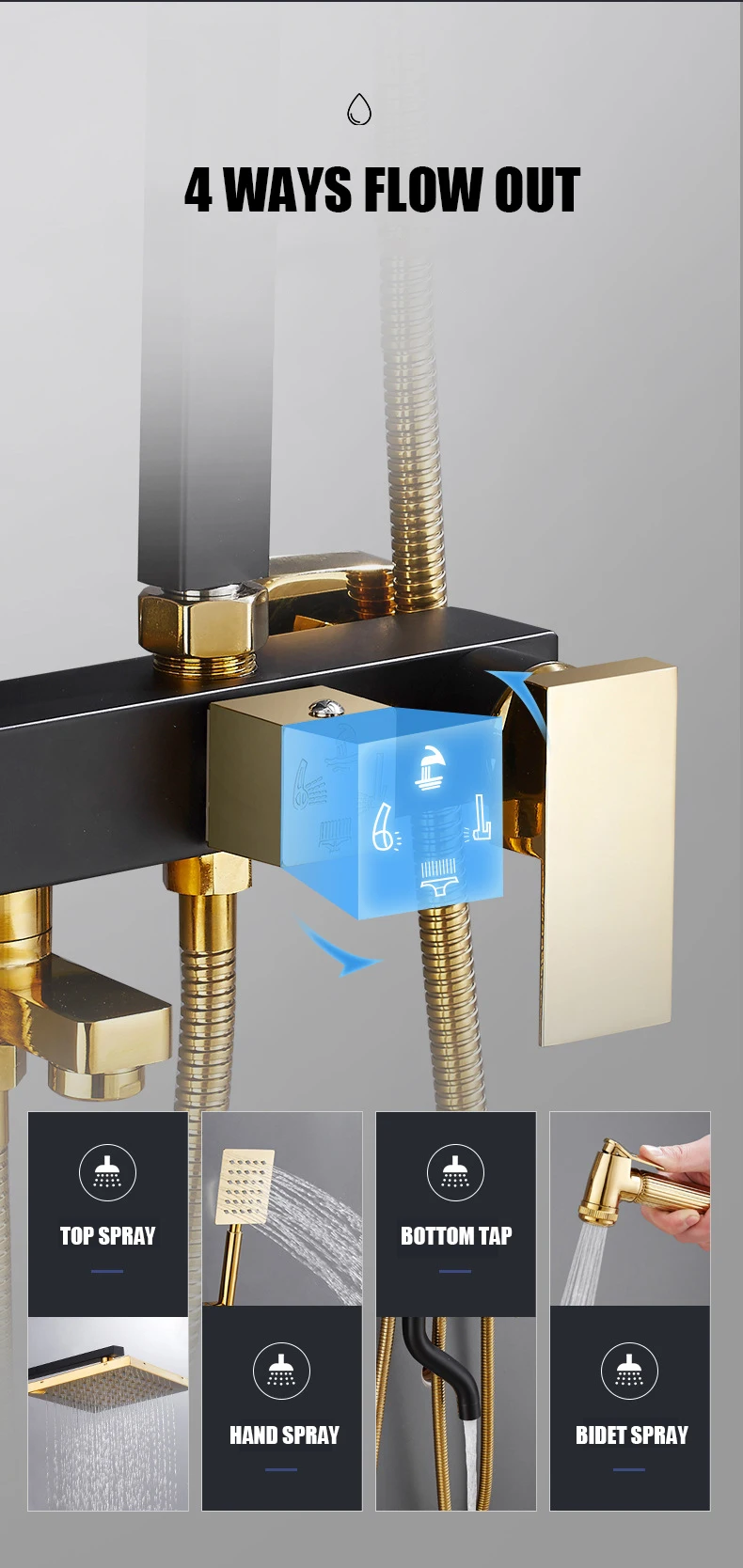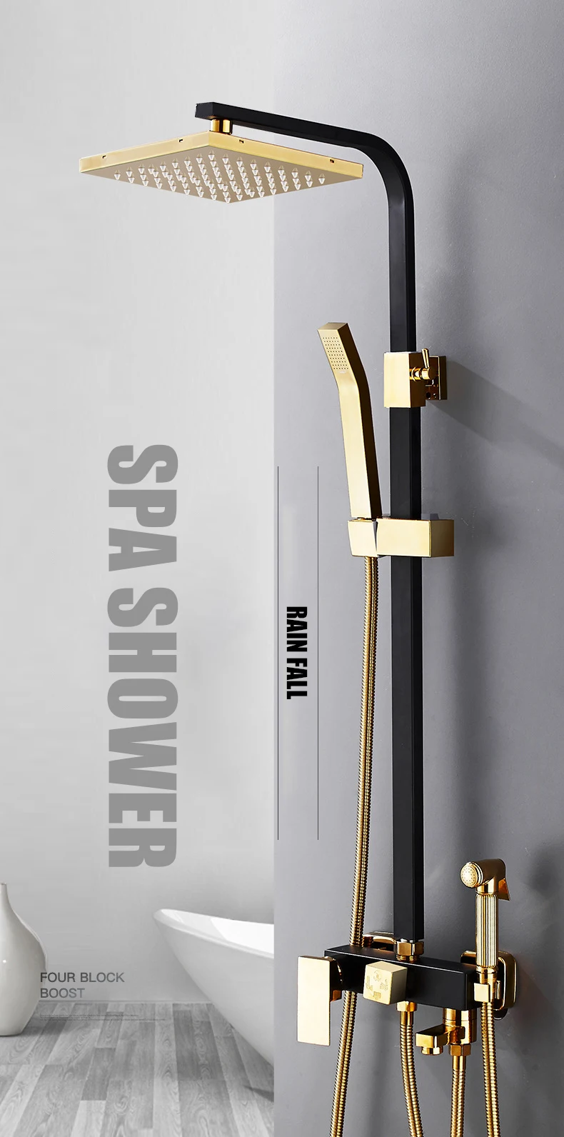 Горячая холодная система душа Ванная комната настенное крепление роскошный набор для душа Квадратная Головка спа смеситель для душа современный латунный черный Grifo