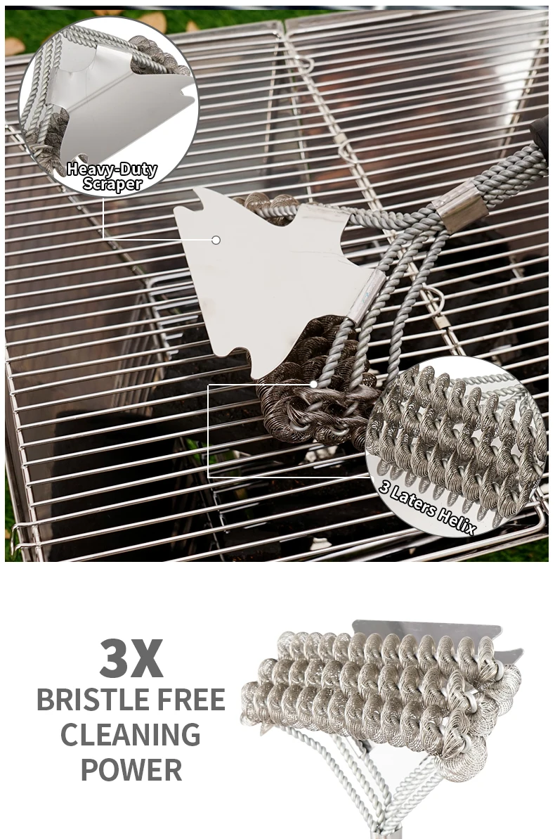 К улучшению жизни щетка для гриля, начиная с использованием метода: Шаг 1: предварительного нагрева гриль в течение 10-15 минут Шаг 2: пуш-ап гриль скребок осторожно и силу, чтобы очистить с упорной следов или смазка на гриле Шаг 3: Заполните небольшую емкость с водой для погружения в щетка для чистки гриля в часто во время чистки. Это создает паровой очистки эффект при влажной кисти прикасается к горячий гриль, что обеспечивает глубокое очищение кожи Шаг 4: работать в Квадратные Секции определяется по горизонтали решетки. Пожалуйста, не скользят по горизонтали решетки, как вы бы с проволочной щеткой.