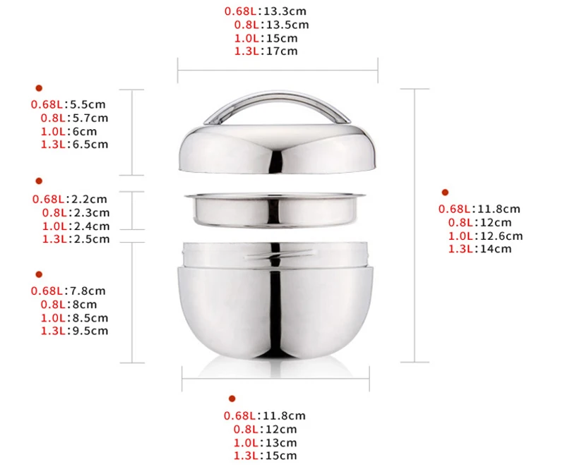Емкость: 800 мл, 1000 мл, 1300 мл