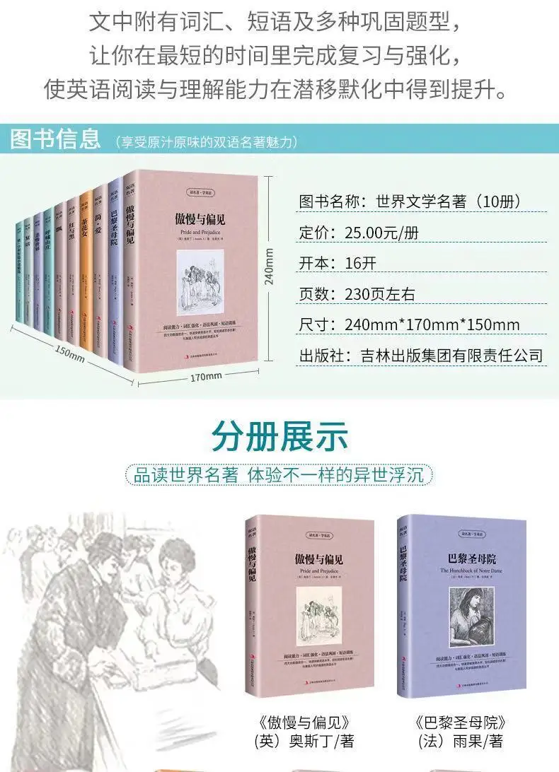Десять величайших мировых литературных шедевров, двуязычная китайская английская фантастика, новая книга с ветром (сокращенная версия)