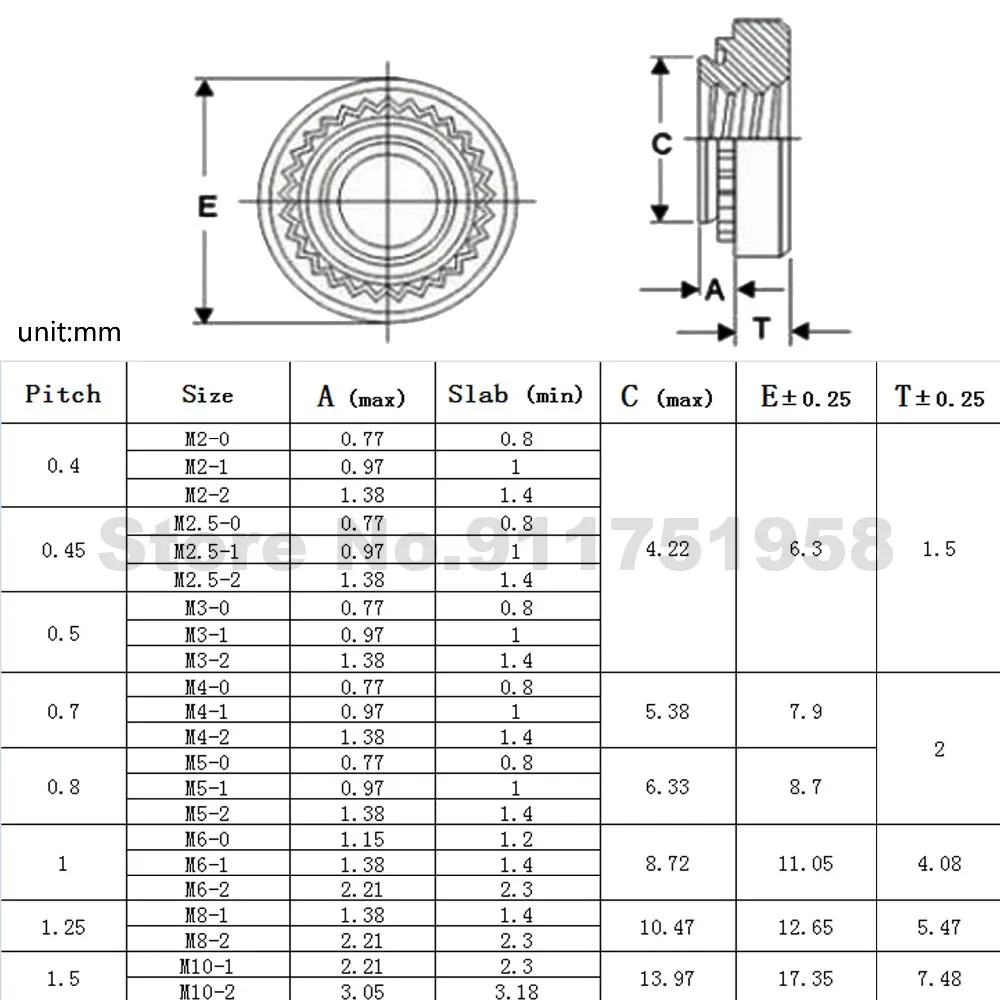 Метрические резьбовые самовсасывающие гайки с заклепками