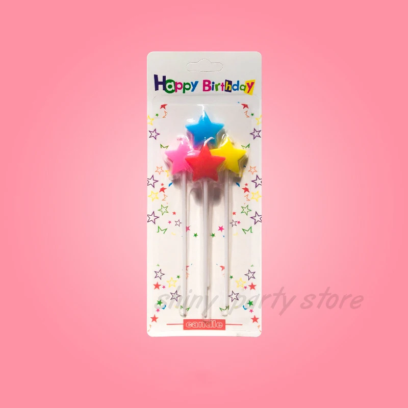 Декоративные свечи на день рождения, цветные Позолоченные свечи для влюбленных, свечи с пятиконечной звездой, праздничные длинные свечи на шесте, товары для дня рождения