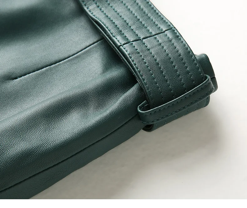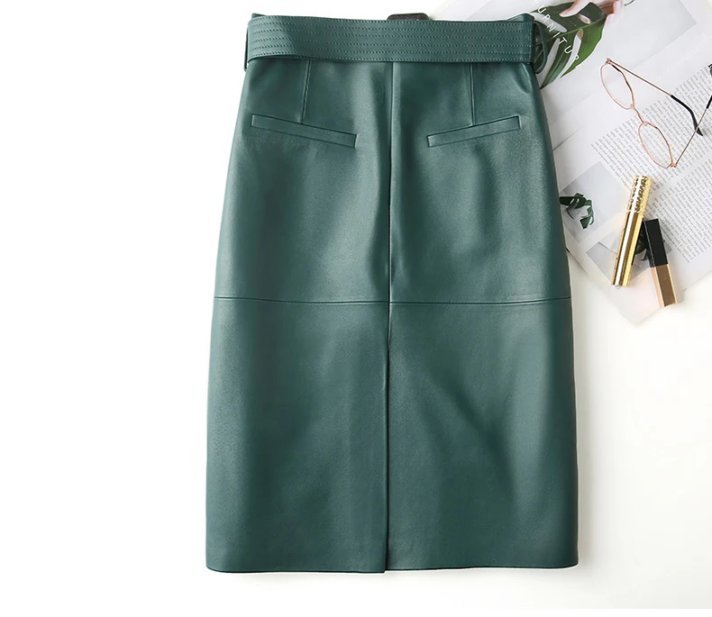 Women Lace-up Genuine Leather Skirt Female Winter Pure Sheep Skin