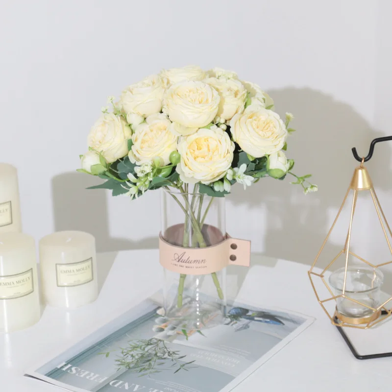 Посылка включает в себя: 1 рука = содержит (5 вилок, 5 больших головок, 4 маленьких головки, 5 наборов имитационных листьев и имитации целлюлозы)