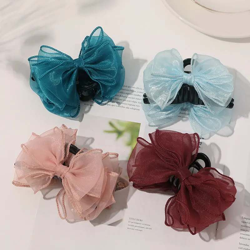 Сетчатая заколка для волос с бантом супер фея однотонные аксессуары для волос цветная пряжа лента, бант, Шпилька органза галстук-бабочка Крабики для волос