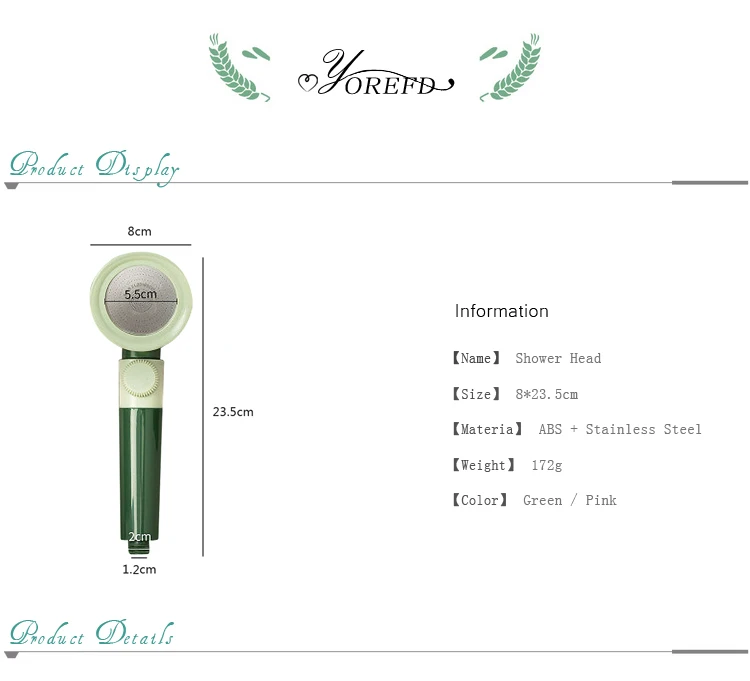 Особенность: 100% новый товар высокого качества. Лазерная перфорированная технология экономит на 30% воды и увеличивает давление на 200%. Простая установка, Просто прикрепите к любому стандартному душевому шлангу. Характеристики Товара: Размер: 8*23,5 см Материал: АБС-пластик + нержавеющая сталь Цвет: зеленый, розовый Вес: 172 г -Примечание: 1. Размер измеряется вручную, возможна погрешность в 0-1 см, это нормально. 2. В связи с разной конфигурацией разных мониторов изображение не отображает фактический цвет товара. Если у вас есть какие-либо другие пожелания, пожалуйста, оставьте нам сообщение, чтобы мы постарались помочь вам.