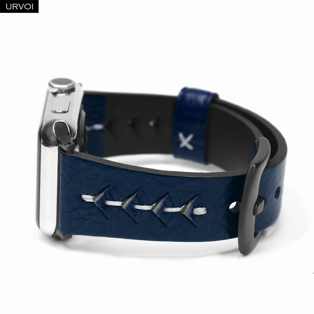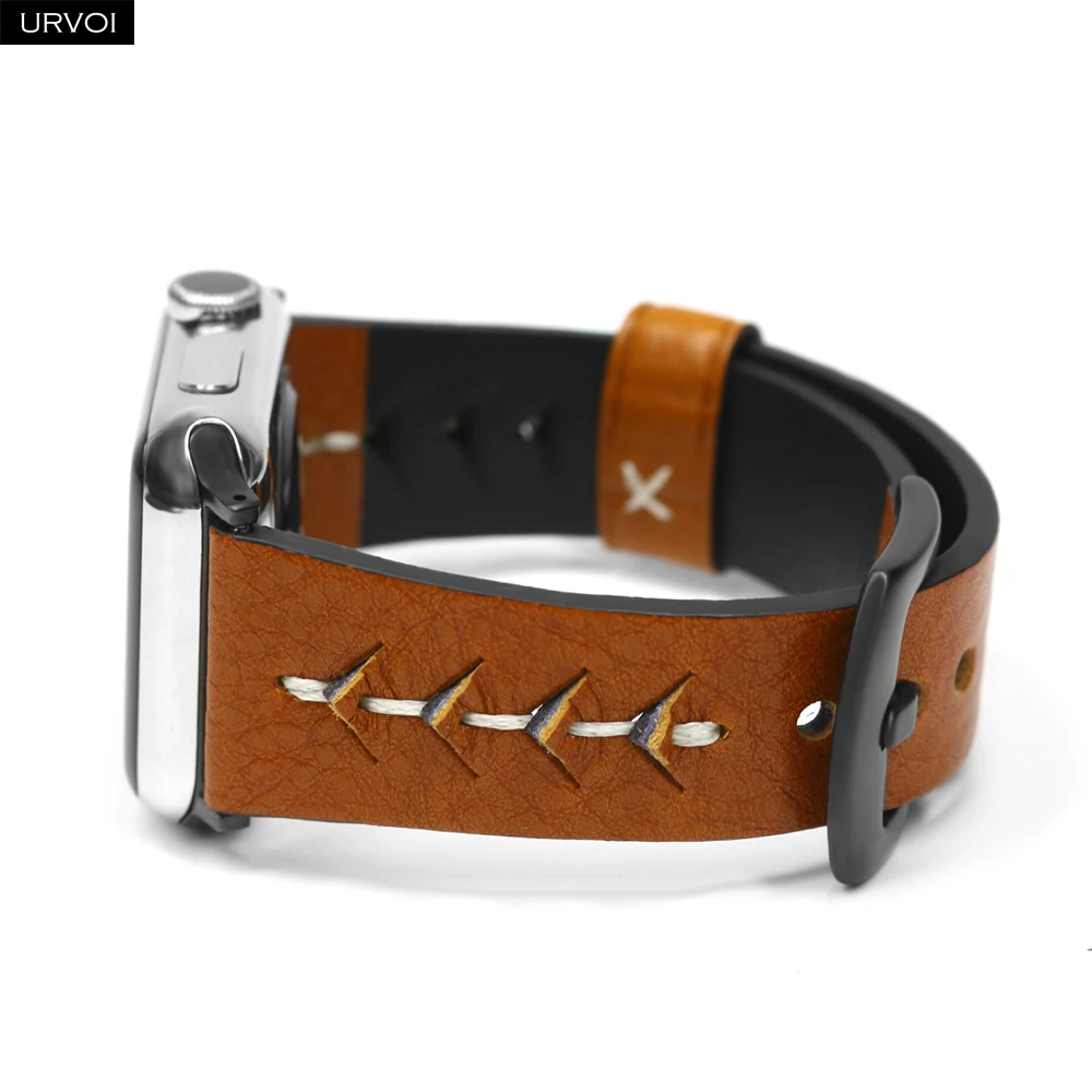 Ремешок URVOI для Apple Watch Series 4, 5, 6, SE, 123 ремешок из натуральной кожи для iWatch 40, 44 мм, рыбья кость, классический стиль, Черная задняя часть