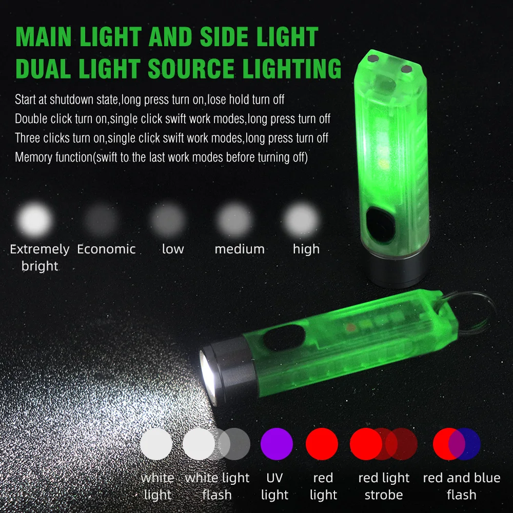 -Функция переключения: Длительное нажатие, чтобы включить или выключить фонарик, одно нажатие, чтобы изменить режим работы;