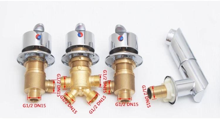 Впускной клапан: впускной клапан используется для переключения горячей или холодной воды. Один впускной клапан может управлять только холодной или горячей водой. Этот клапан подходит расстояние от центра отверстия 1,22-1,38 дюймов/3-3,5 см.