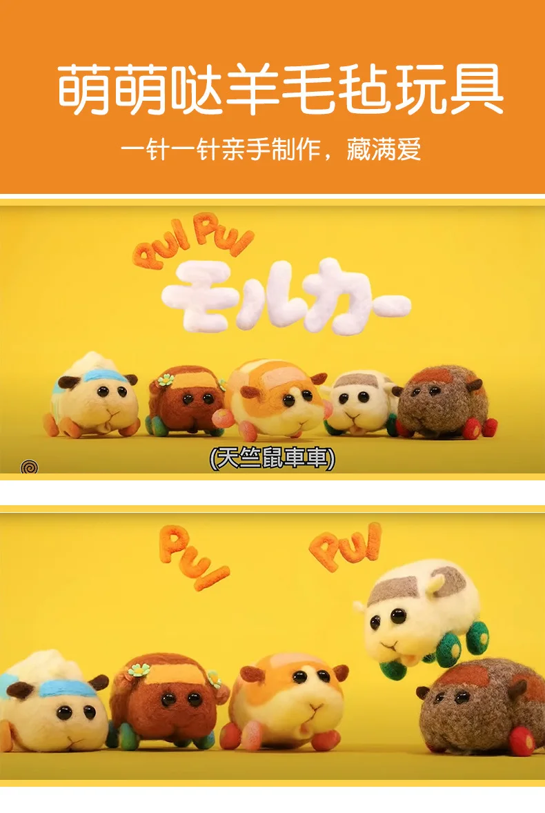 Новинка, Pui Molcar, незавершенный, расслабленный, DIY набор, ручная работа, карманный, морская свинка, милые животные, кукла, шерсть, игла, набор для валяния, детский подарок
