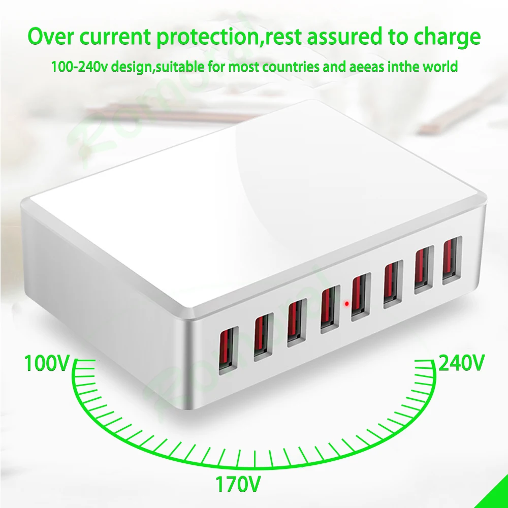Зарядное устройство с 8 USB-портами, 40 Вт, портативные настольные USB