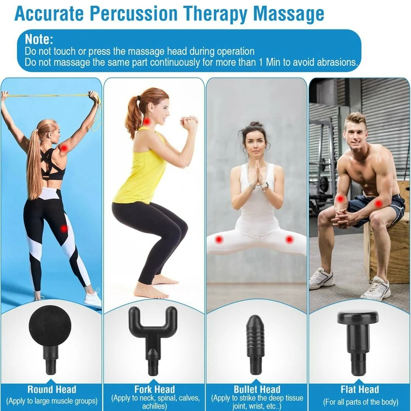 1. Глубокий массаж мышц: мощный пистолет массажер с 6 уровня интенсивности массажа, который может генерировать ударной волны до 3300 об/мин, который может работать по всему телу ткани и мышцы.