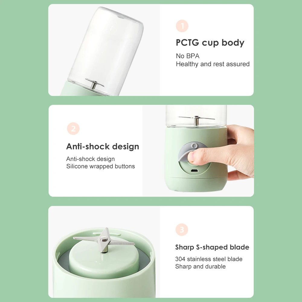 Ручной блендер портативная соковыжималка 6 лезвий миксер заряжаемый Электрический кухонный комбайн 500 мл Быстрый соковыжималка фруктовая чашка