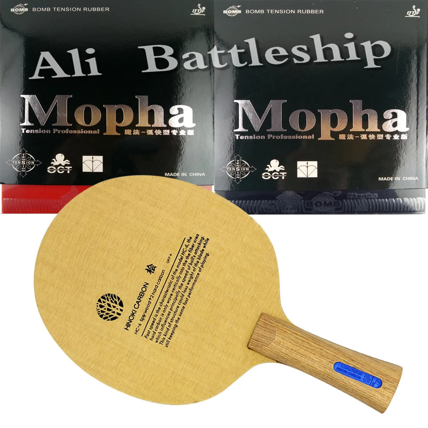 Профессиональная комбинированная ракетка для настольного тенниса SANWEI HC6S Hinoki, углеродное лезвие с 2 шт., Bomb Mopha Pro.Tension Professional pingpong rubber