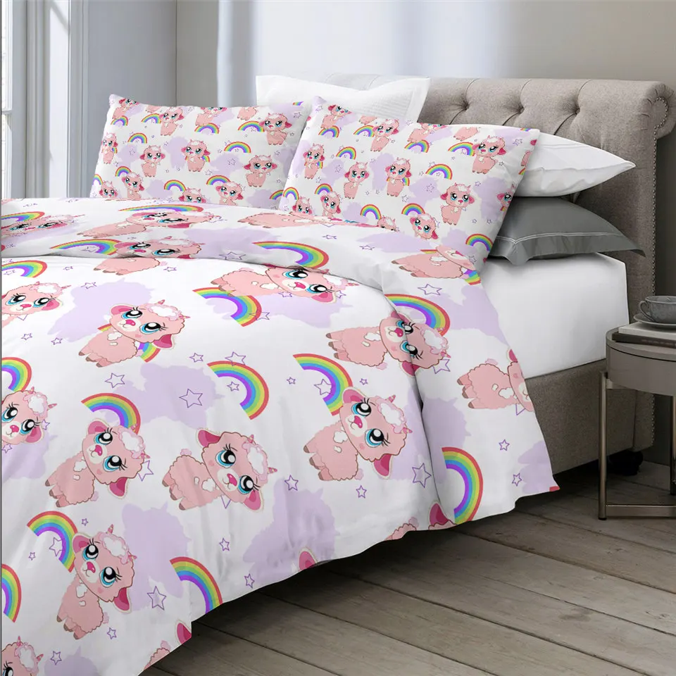 Item Name:Bedding SetPacking List:1* Duvet Cover + 2* Pillow CasesFabric:PolyesterSeason:Spring, Summer, Autumn, WinterFeatures:Popular sheep and moon design is designed for stylish you!BeddingOutlet Reminder:1) If you need extra sheet to match, please contact us.