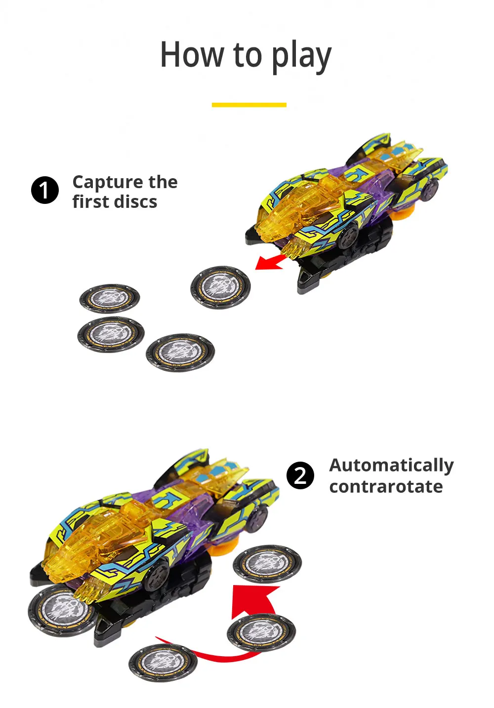 Этот автомобиль может поглощать 4 монеты для самостоятельного оснащения. Спринт и поймать 1 монету, чтобы запустить орган. Автоматически вращайте хвост, чтобы привлечь монеты. Затем переверните и Морф зверю. Каждый артикул включает в себя 4 диска.