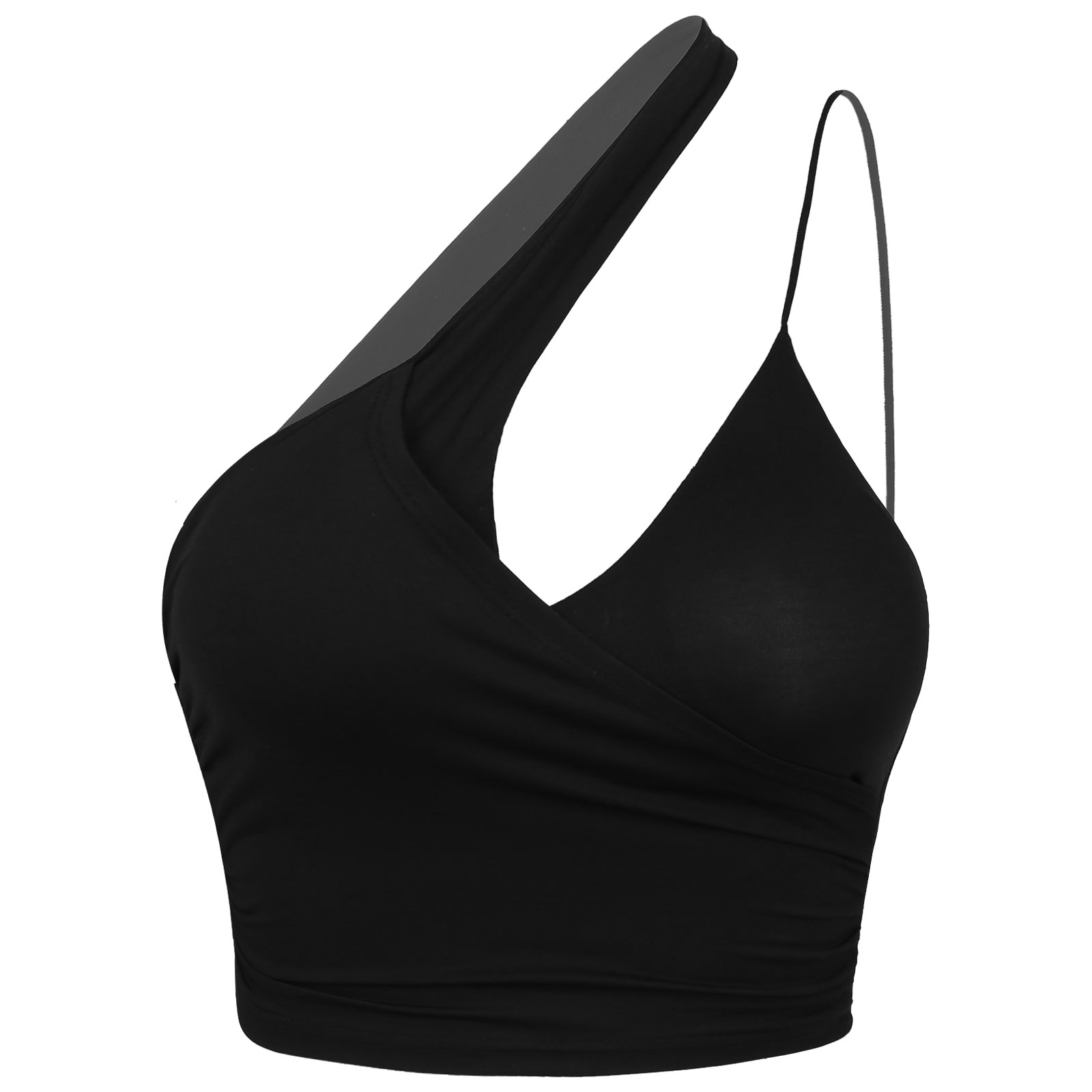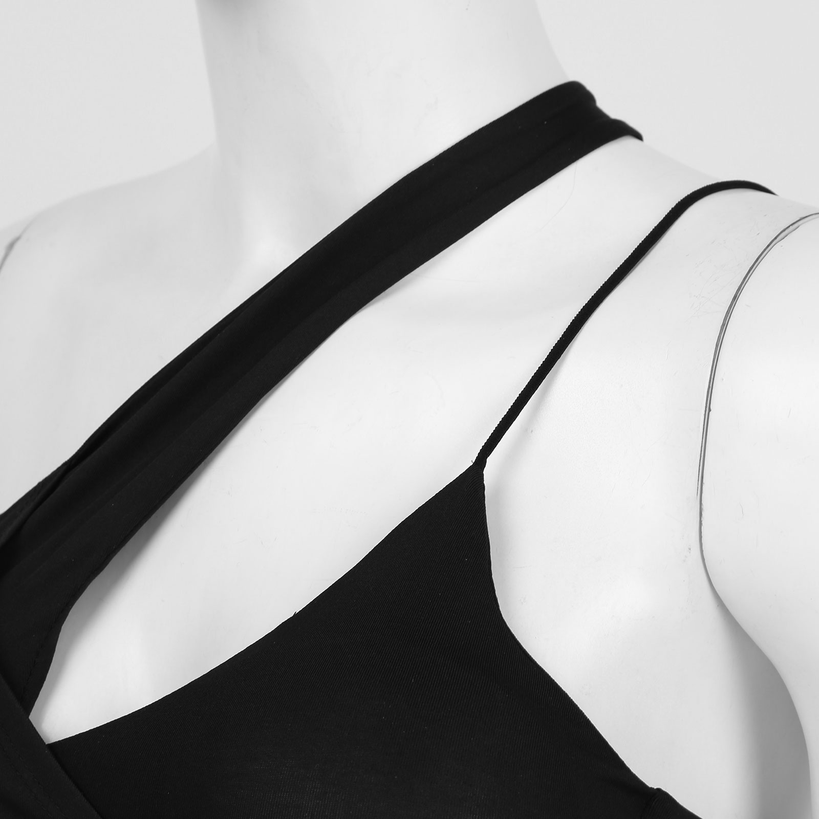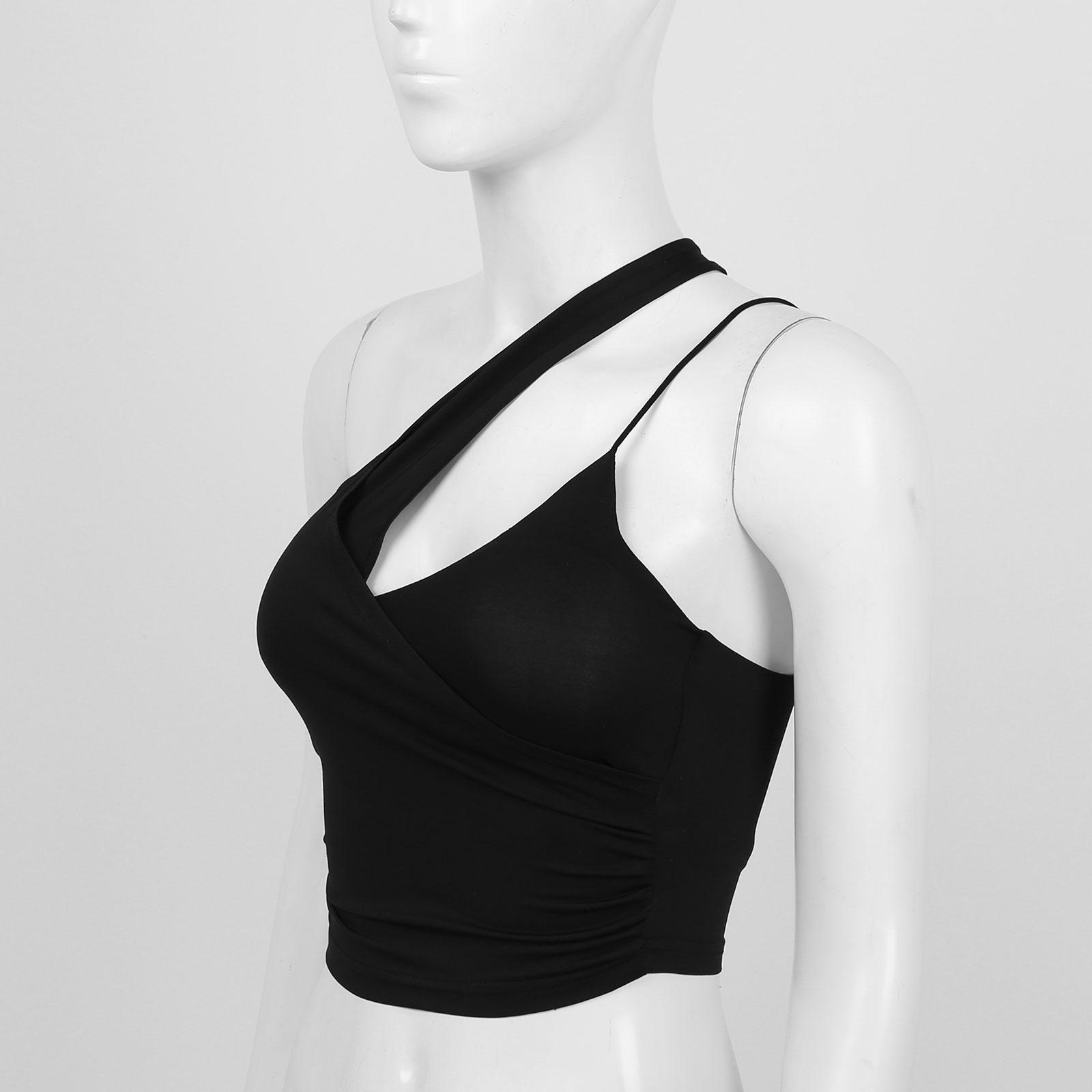 Чистый цвет, асимметричный дизайн, ремешки, обрезанный жилет, съемные подушечки для лучшей формы и поддержки.