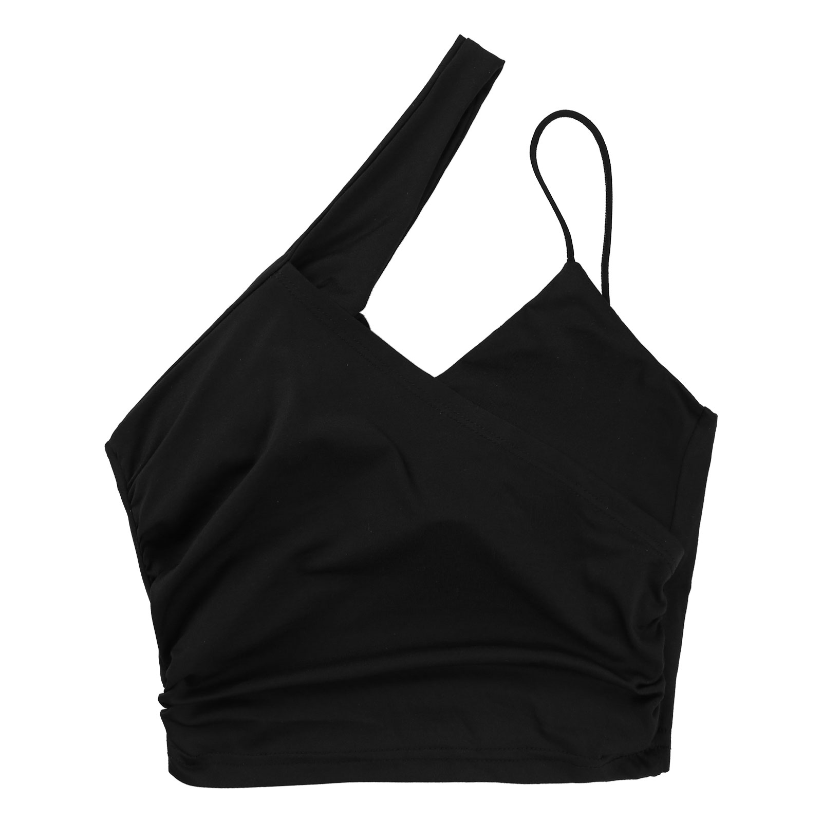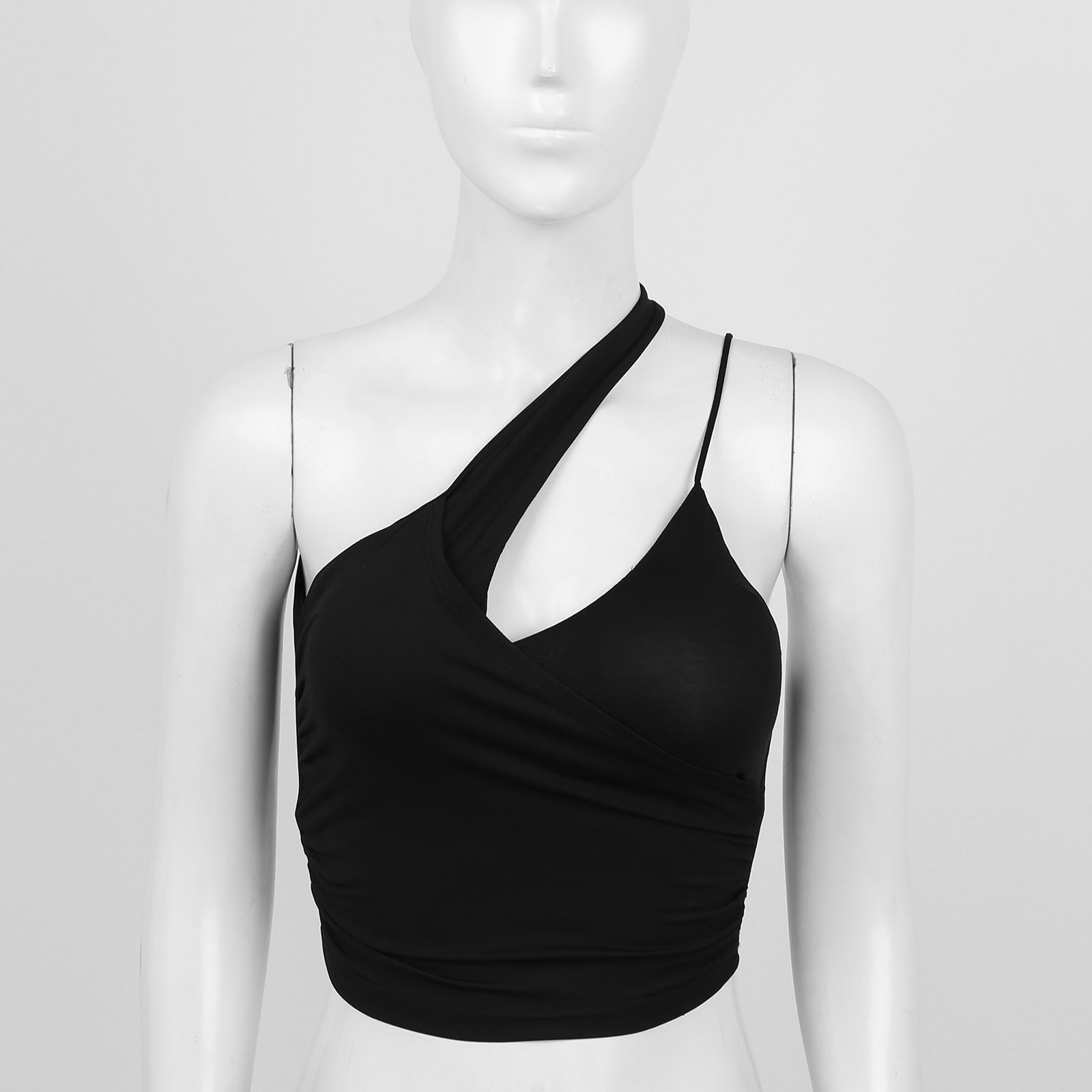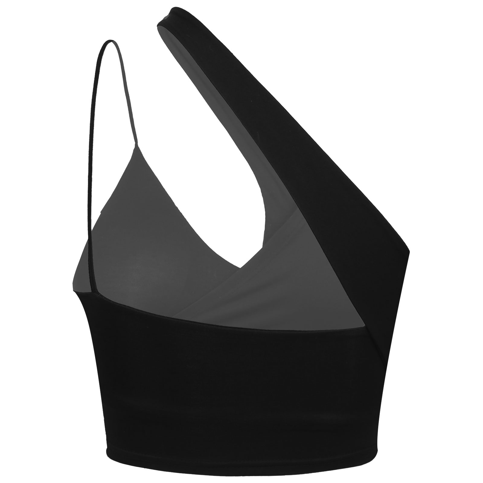 Женский Асимметричный укороченный топ на бретельках с открытым верхом и съемными накладками.
