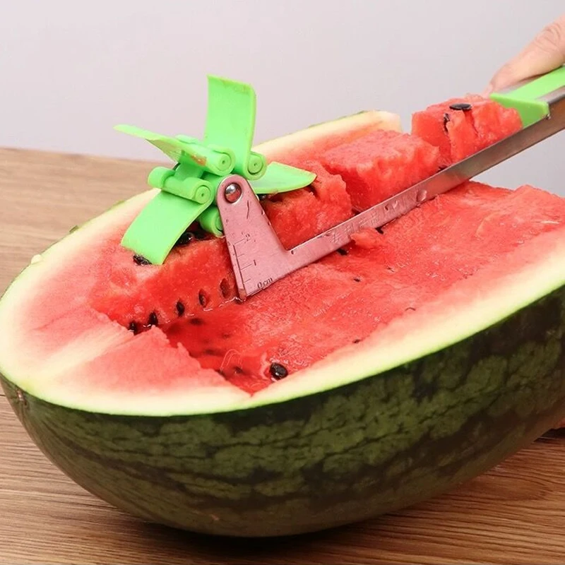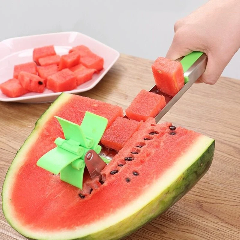 3. Резак для арбуза из нержавеющей стали 18/8-это простой инструмент для быстрой резки и подачи арбузных кубов плавно и легко. Арбуз получает кубики, которые вы себе представляли, всего одним простым шагом, просто нажмите на них.