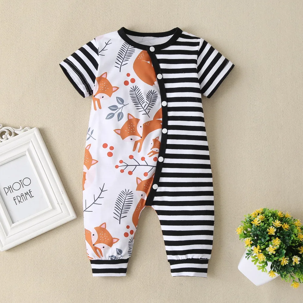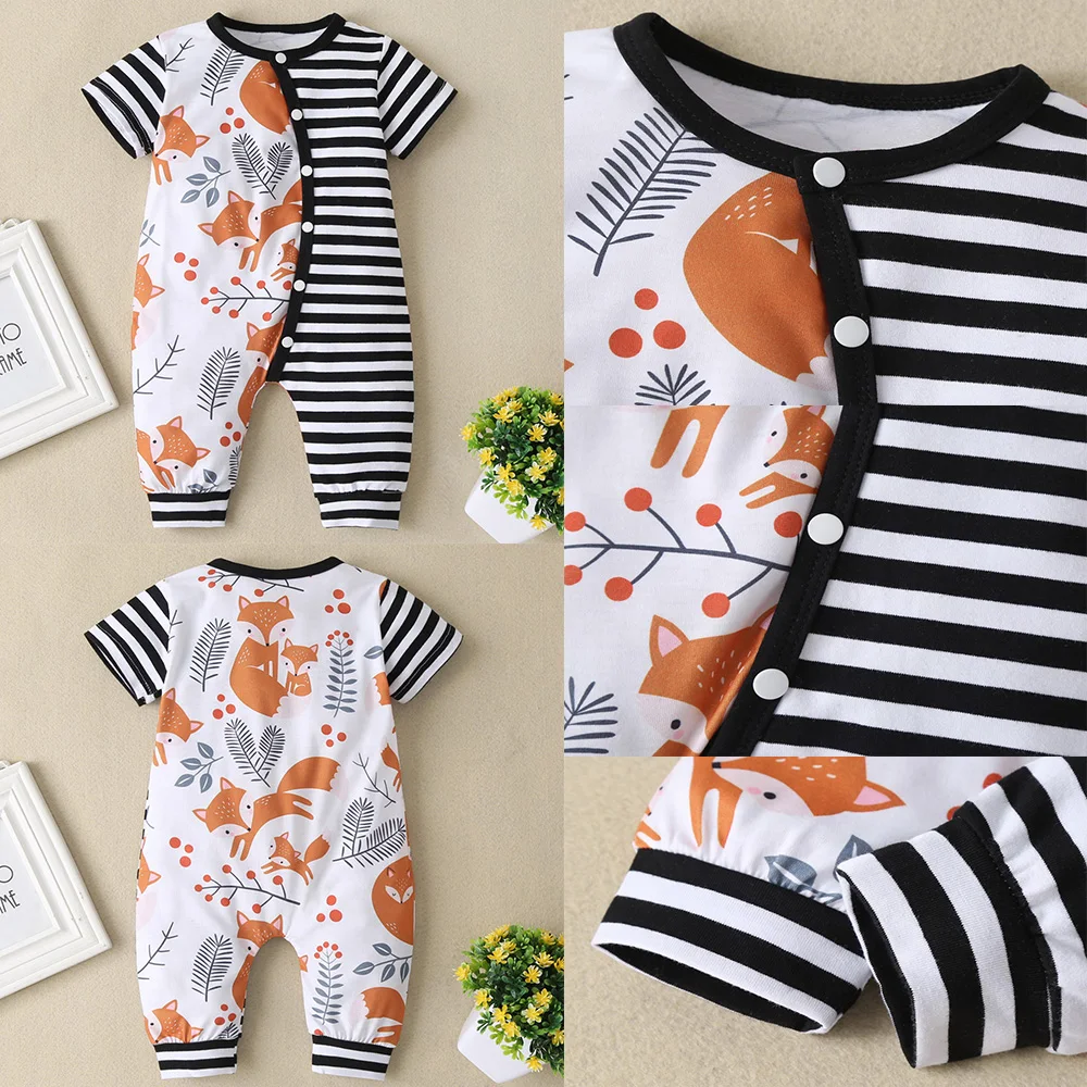 Newborn Baby Boys Striper Short Sleeves Romper Animal Print Babygrows