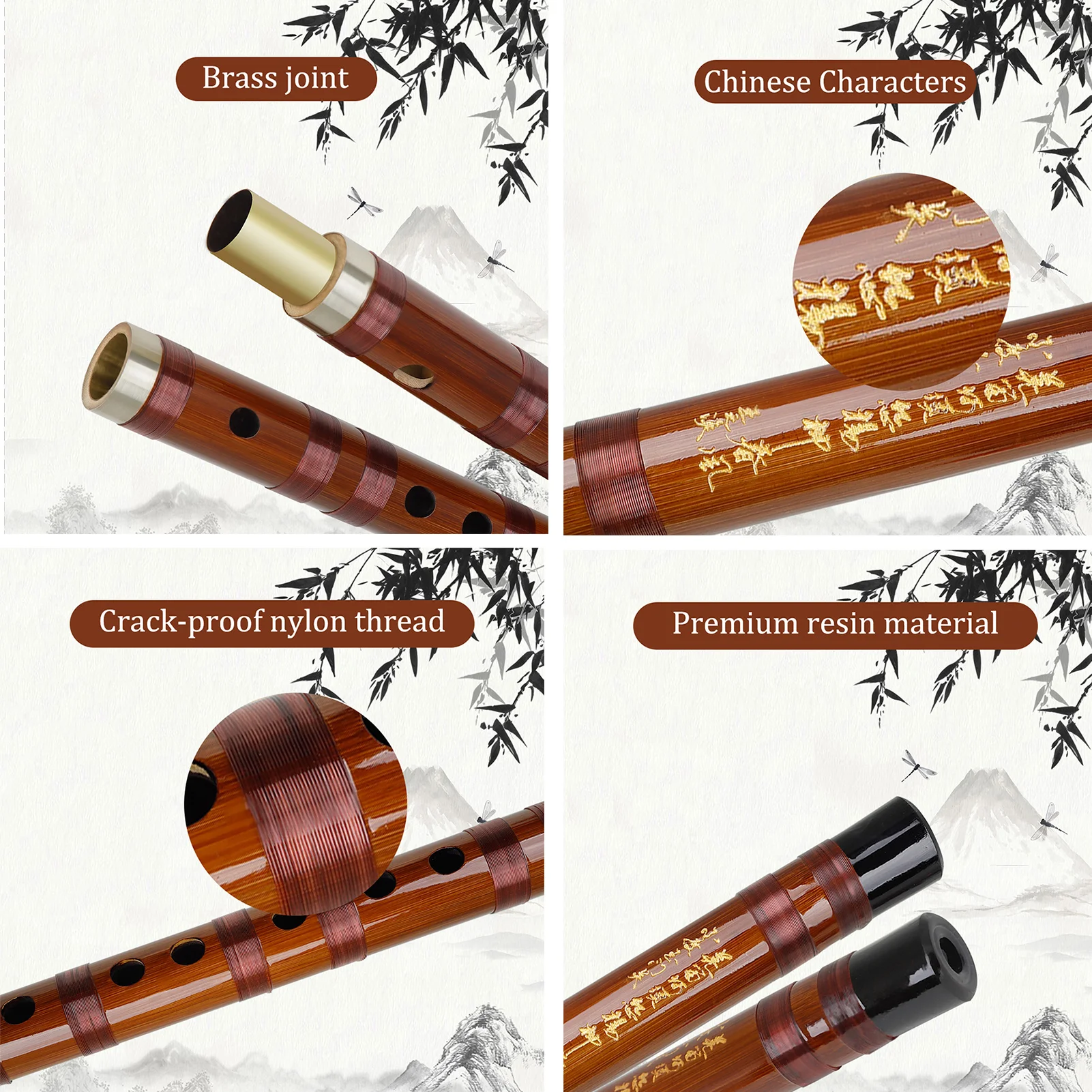 Сделанный из Горького бамбука, обжаренный в тени в течение пяти лет, звук чистый, яркий и мелодичный.
