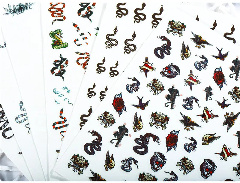 Стикеры 3D на ногти NAIL ART, новинка, черный, белый, дракон, змея, животное, дизайн, Временные татуировки, клей, вода, слайдер, обертывание, наклейка, инструмент для маникюра