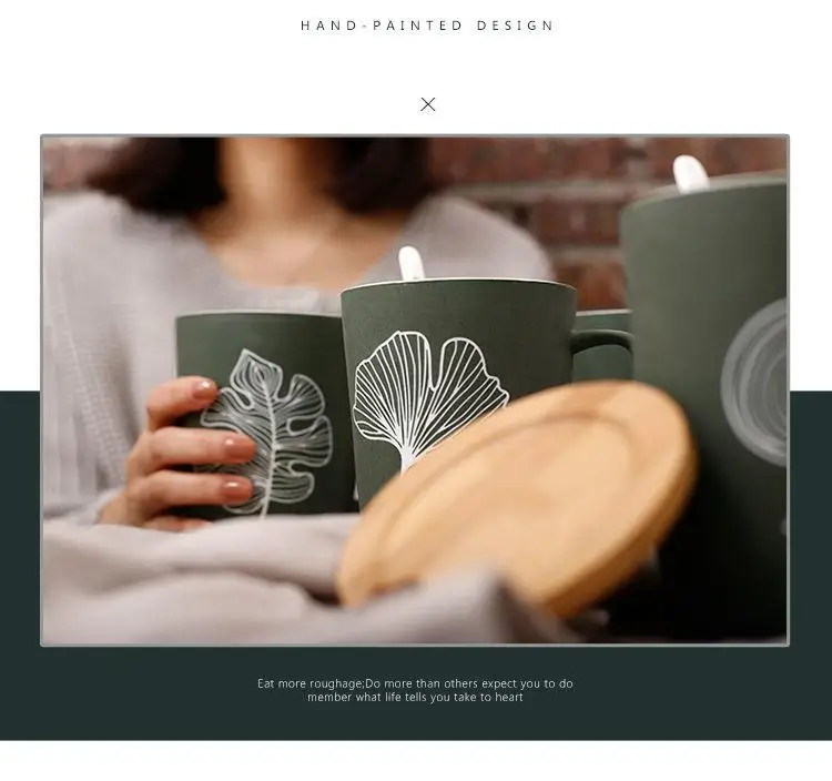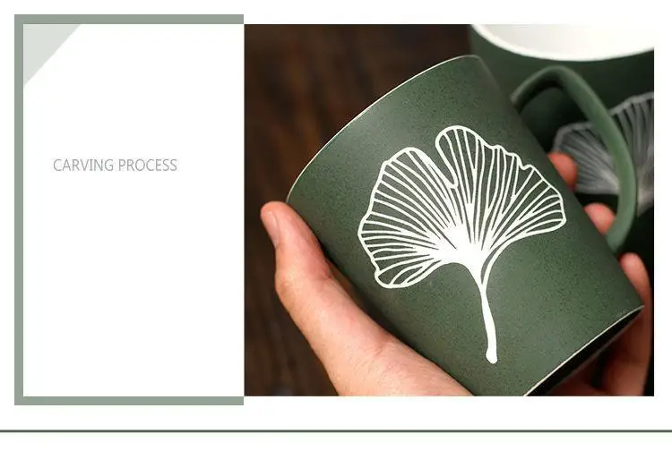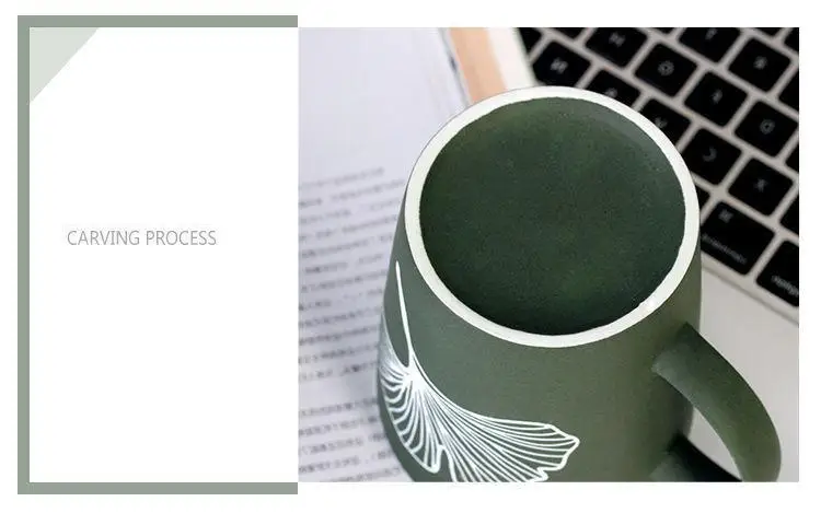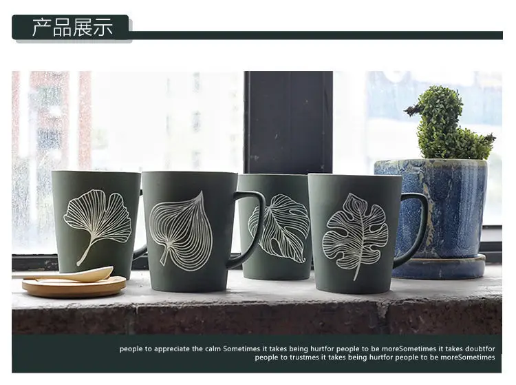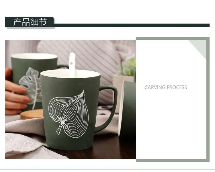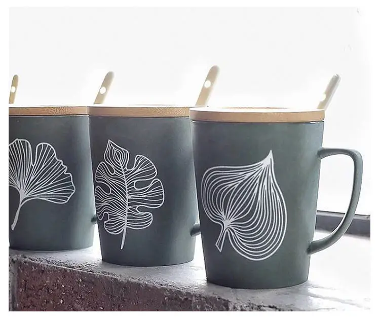 350/520 мл керамическая кофейная кружка с рисунком листьев с крышкой, большая емкость, матовая чашка для воды, Офисная кофейная чайная чашка, кухонная утварь