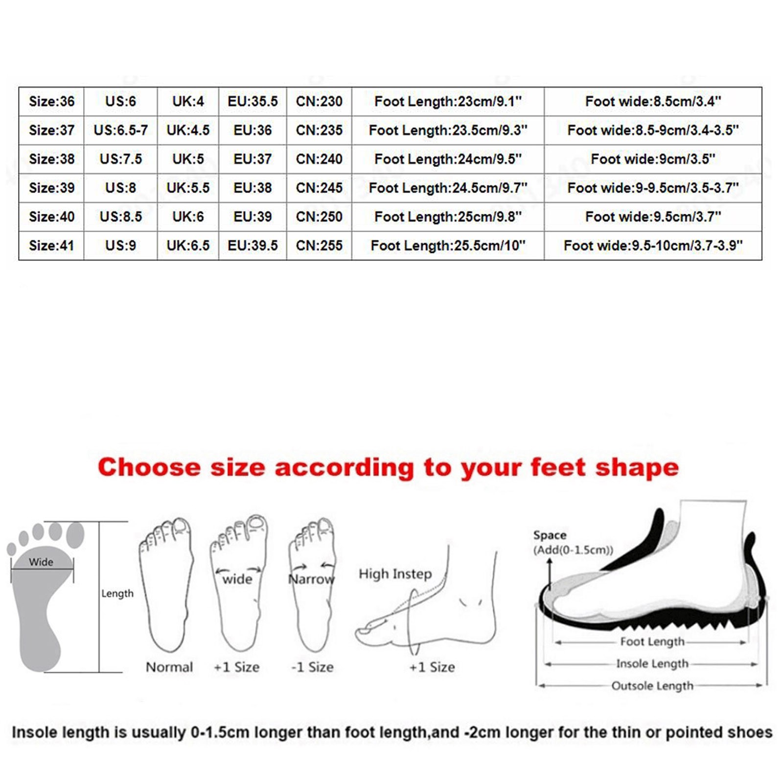 Теплое напоминание:Различные стили обуви, пожалуйста, выберите размер в соответствии с типом вашей стопы.