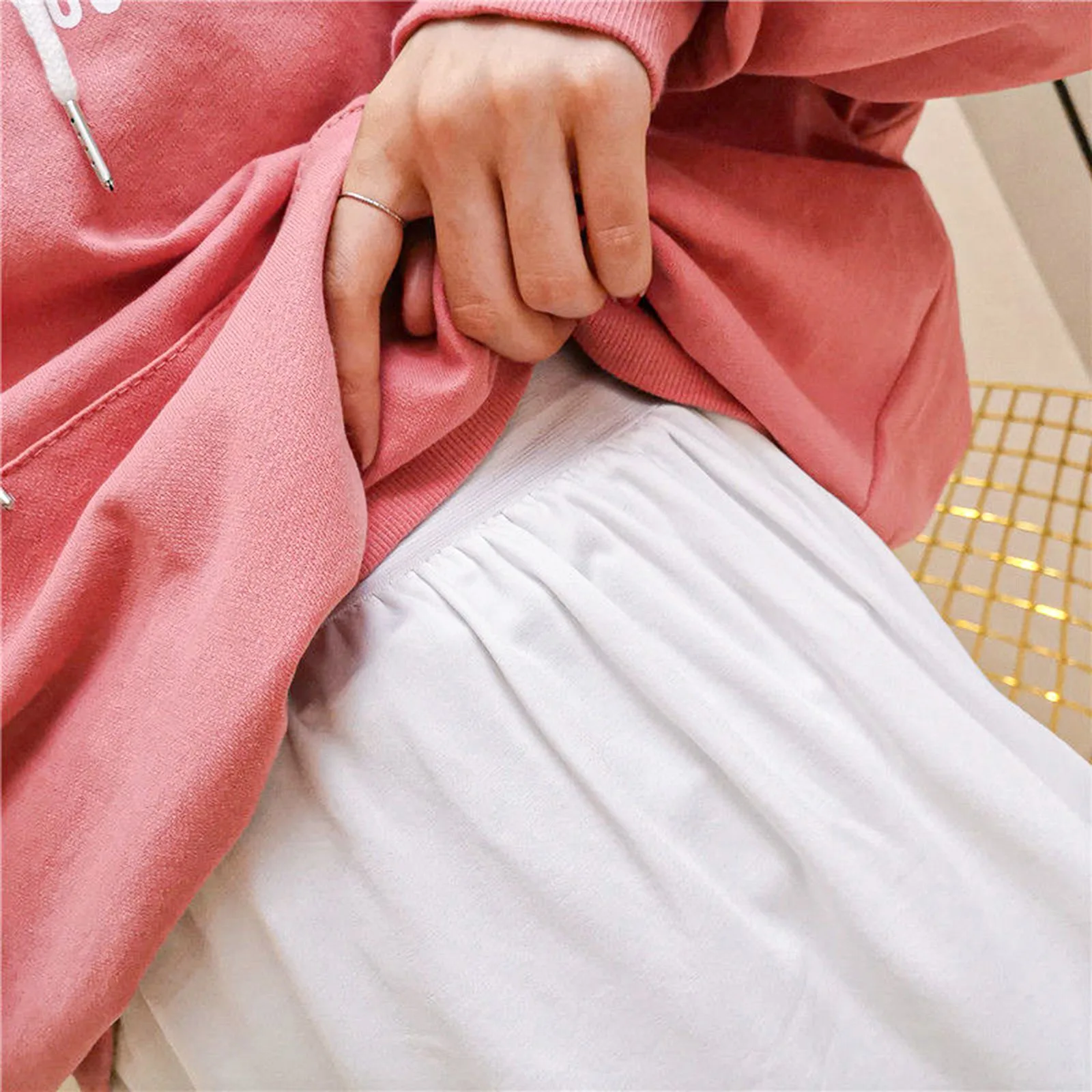Расслабленный стиль:Эластичный пояс, Повседневная застежка, классический черный/белый цвет. А-образный расклешенный фасон, круглый и изогнутый низ, легко надевать и снимать.
