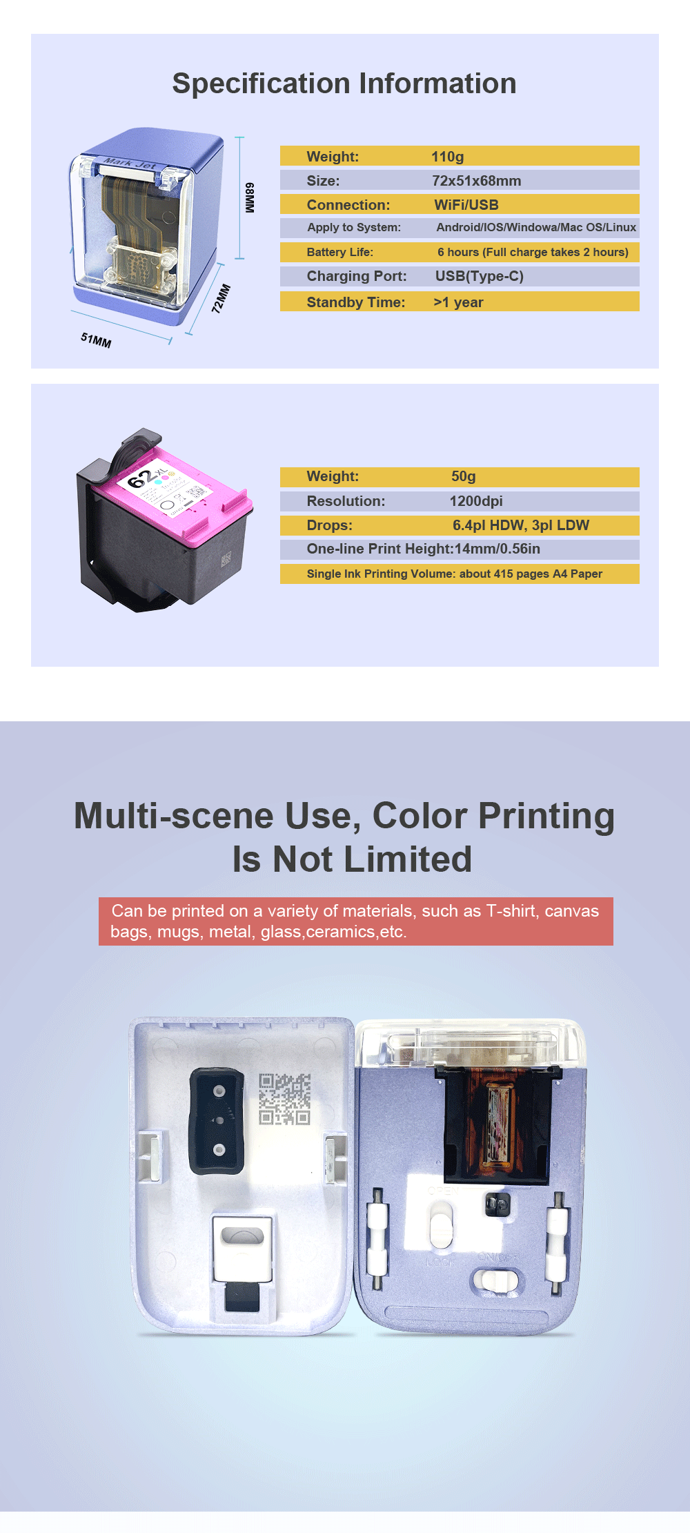 Портативный Мобильный цветной мини портативный струйный принтер WIFI беспроводной Bluetooth тату логотип печать струйный принтер для ios Android