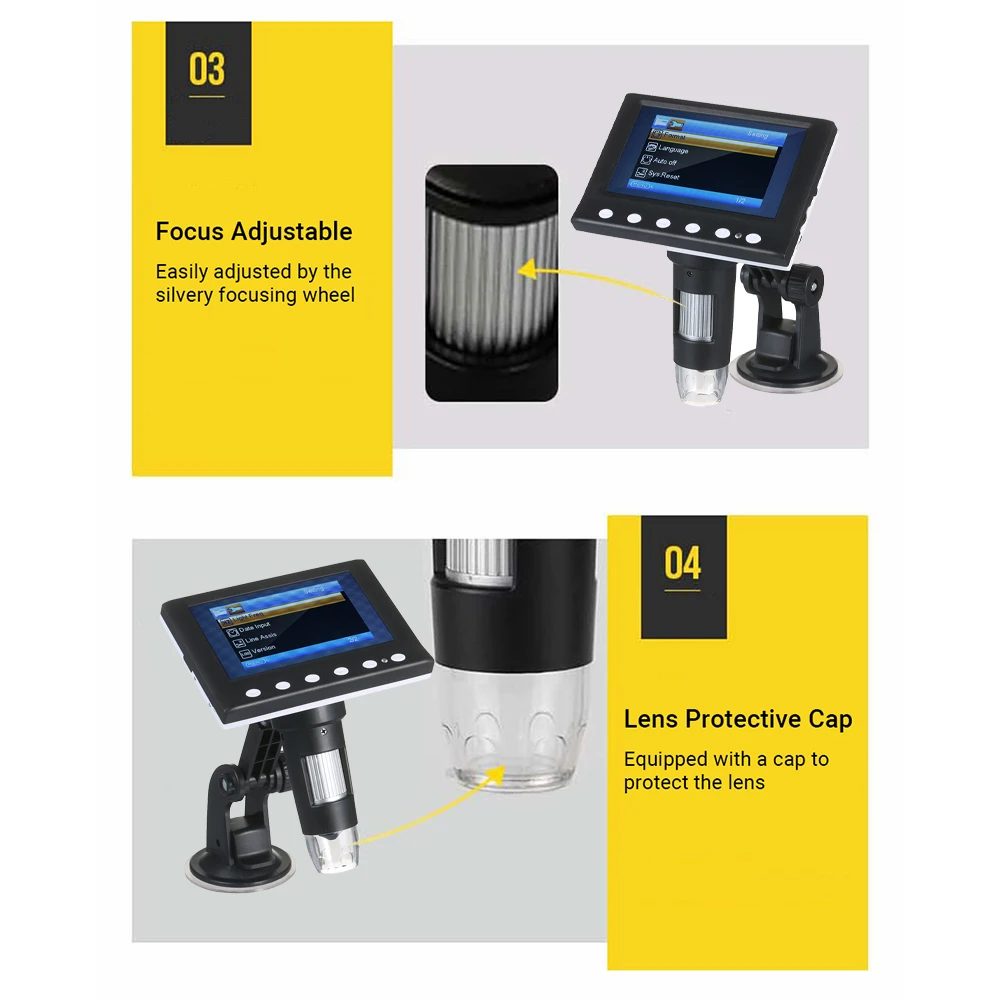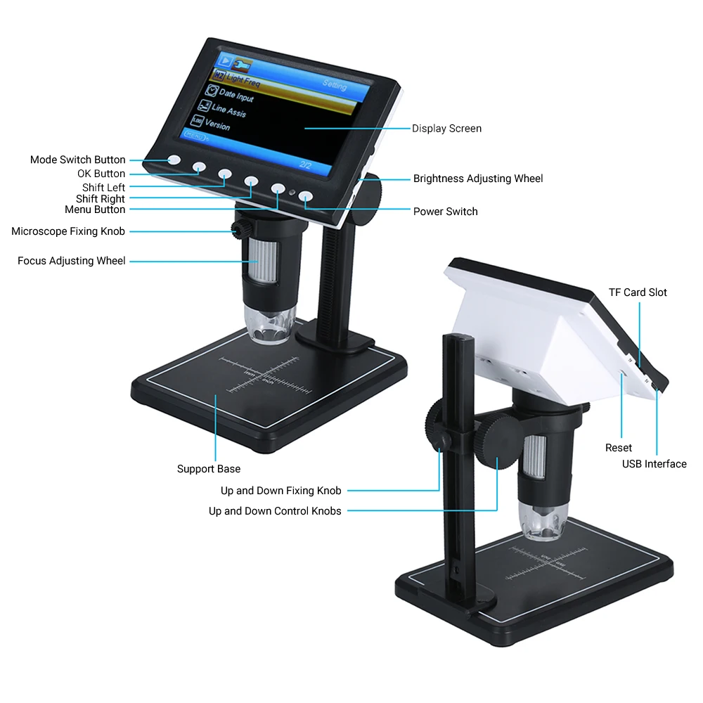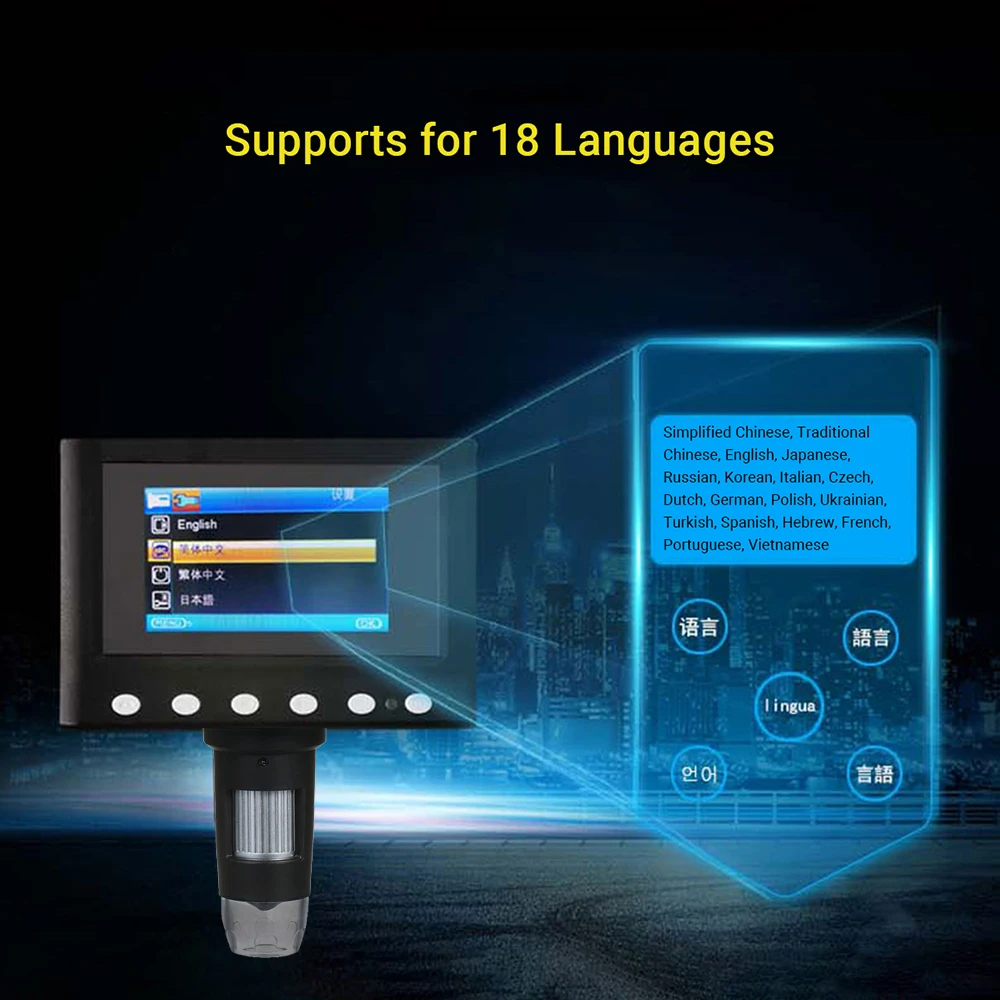 Особенности микроскопа: четкое изображение, тонкое мастерство, самозаменяемая батарея, Встроенный светодиодный светильник, подключение к компьютеру, поддержка 18 языков и т. д. Очень подходит для проверки и ремонта точных объектов, таких как печатная плата, часы, смартфон и многое другое, также может использоваться в качестве инструментов для обучения и исследований, Помощь в чтении, и антикварная оценка монет/ювелирных изделий.