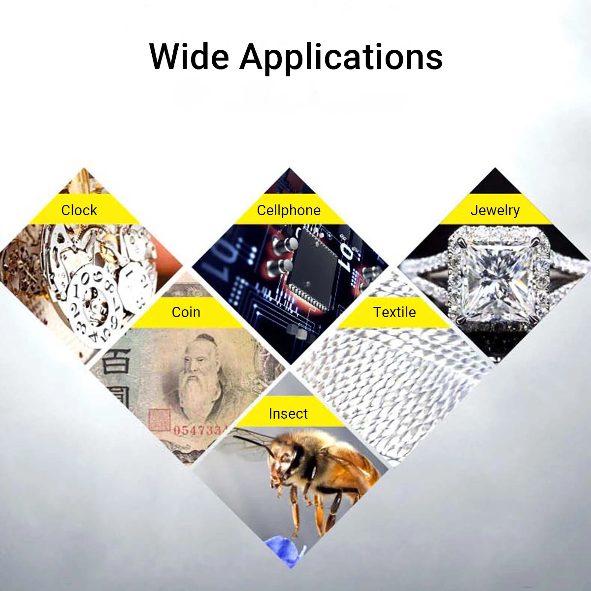 Широкое применение: Может использоваться для осмотра и ремонта печатных плат, контроля и ремонта часов и мобильных телефонов, текстильной инспекции, инспекции печати и т. д.