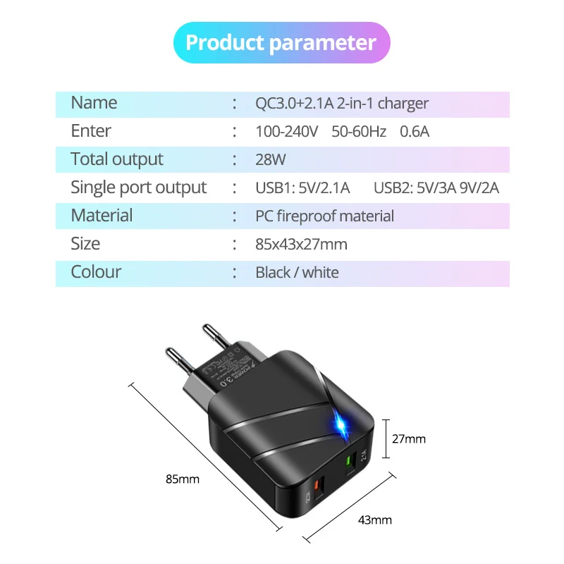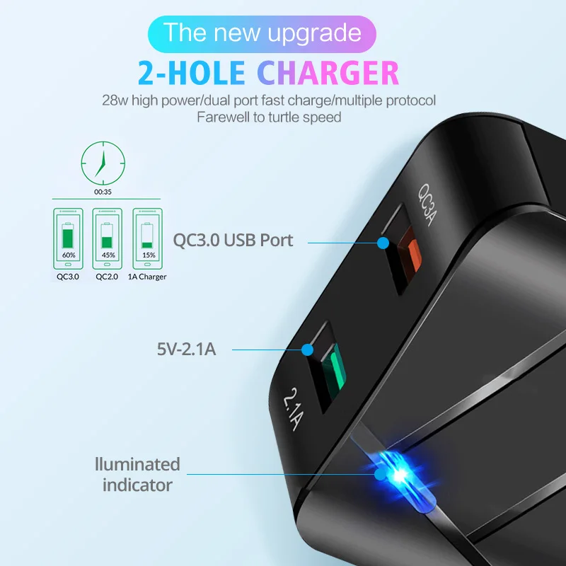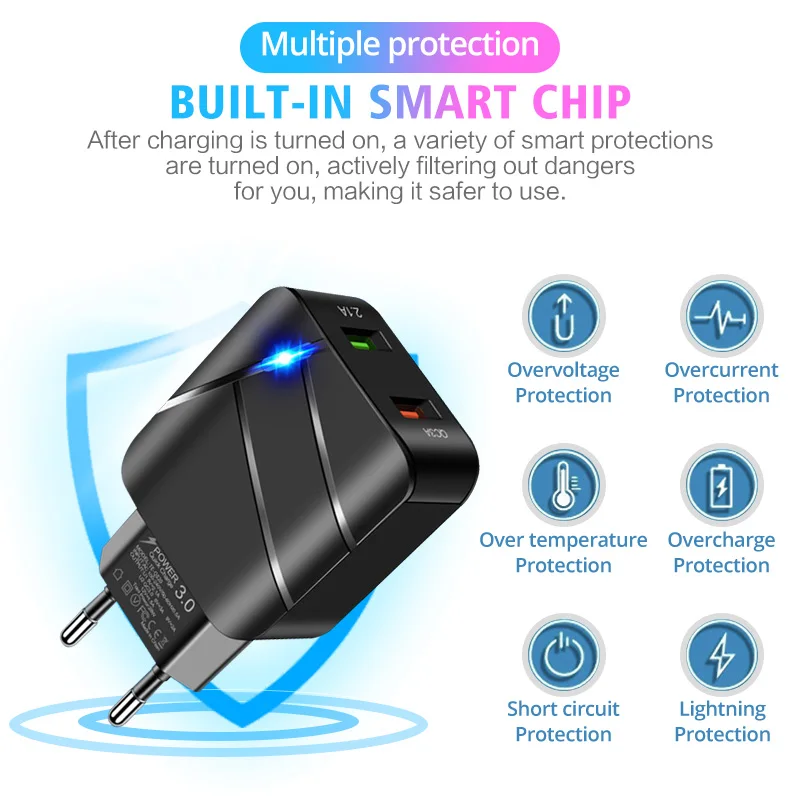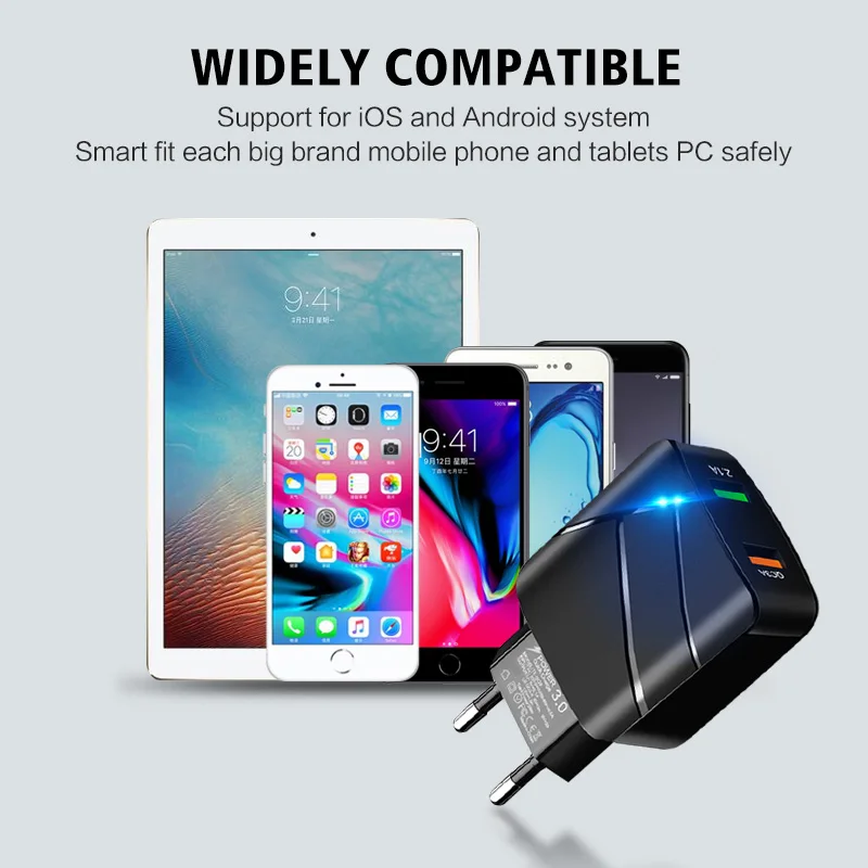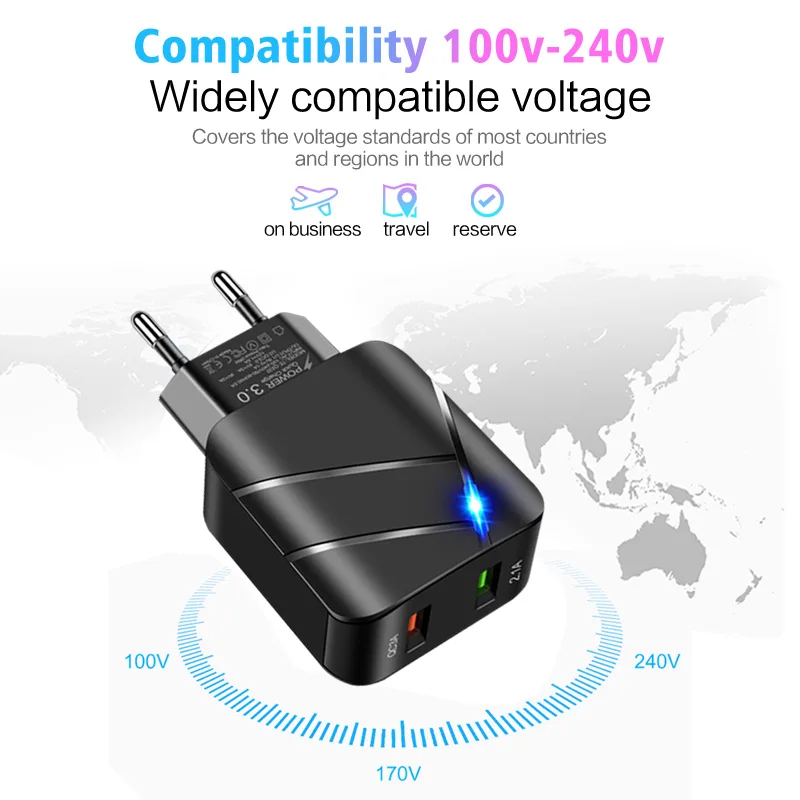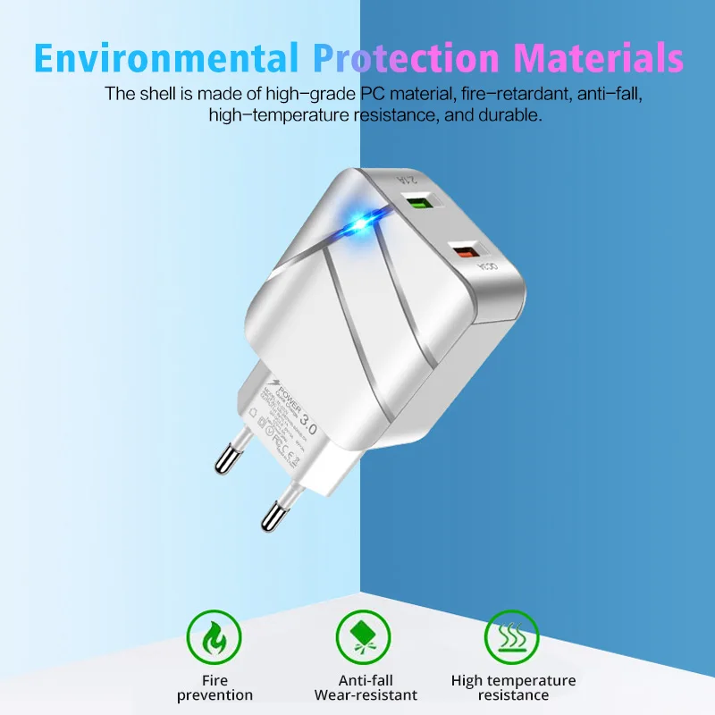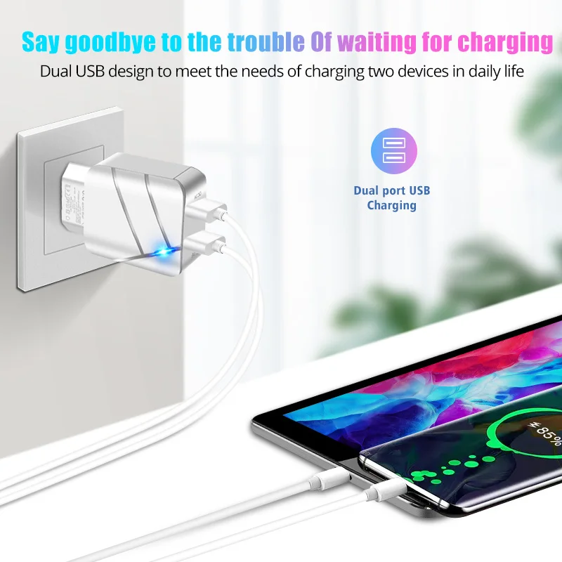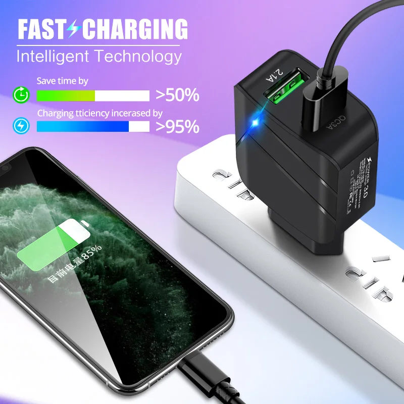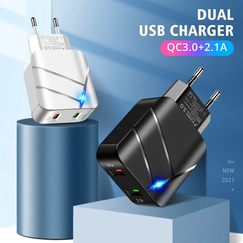 ANKNDO QC 3,0 быстрое зарядное устройство EU настенное зарядное устройство 2 порта 5V 3A 5V 2.1A USB зарядное устройство для Iphone XIaomi Samsung смартфон зарядное устройство