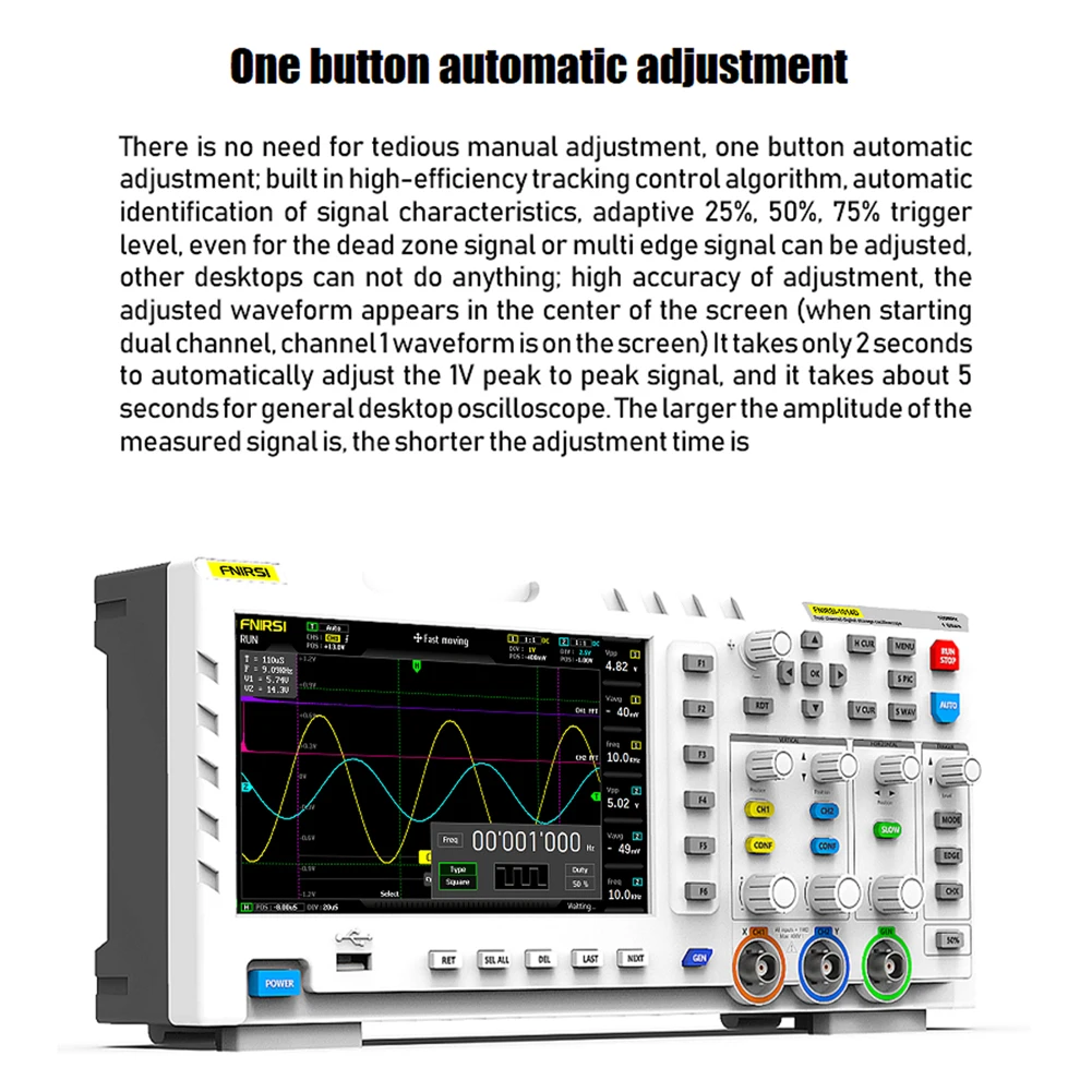 Equipped with high efficiency One-button AUTO, and one-button waveform storage and screenshot function.