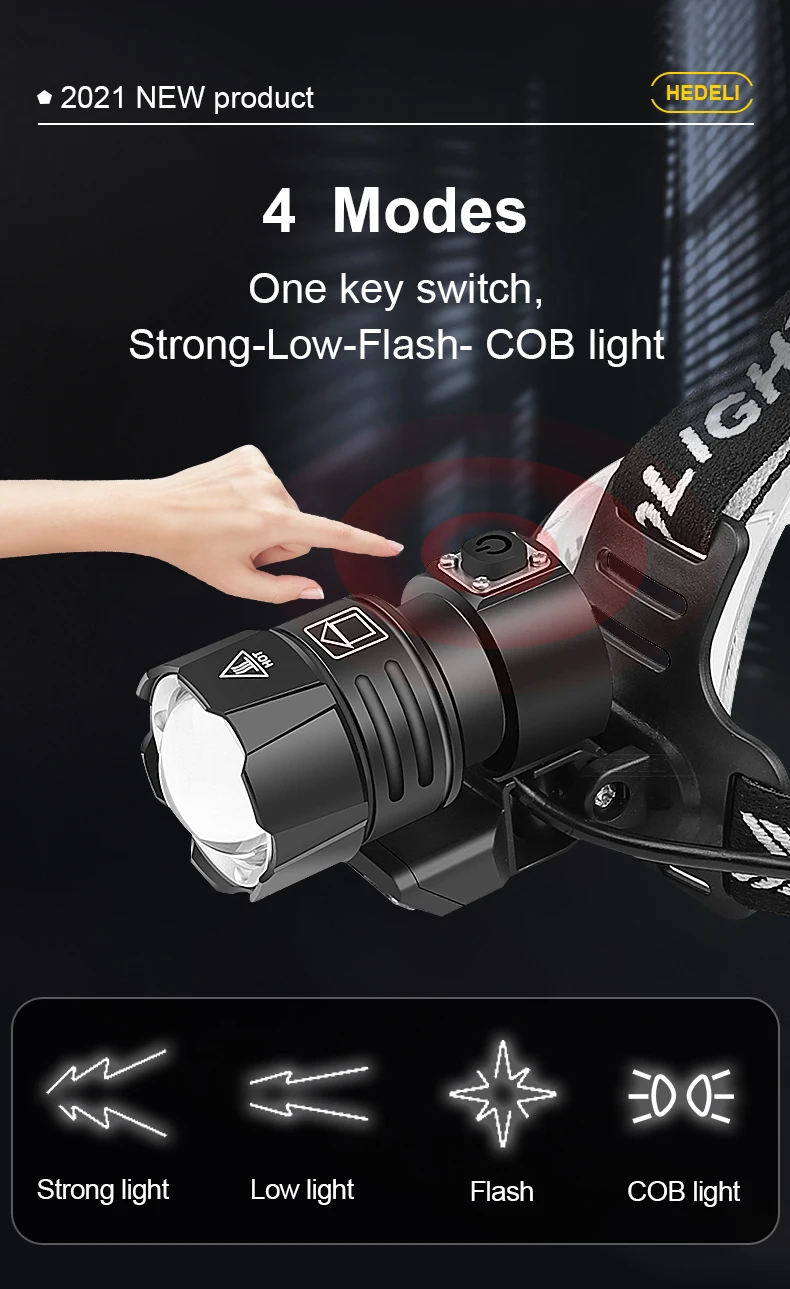 Супер яркий Перезаряжаемый светодиодный налобный фонарь XHP160 может фокусироваться и освещать на 1500 метров, он может освещать ваше окружение. Обеспечит вам супер ярсветильник белый свет в ночное время. Срок службы> 100000 часов.