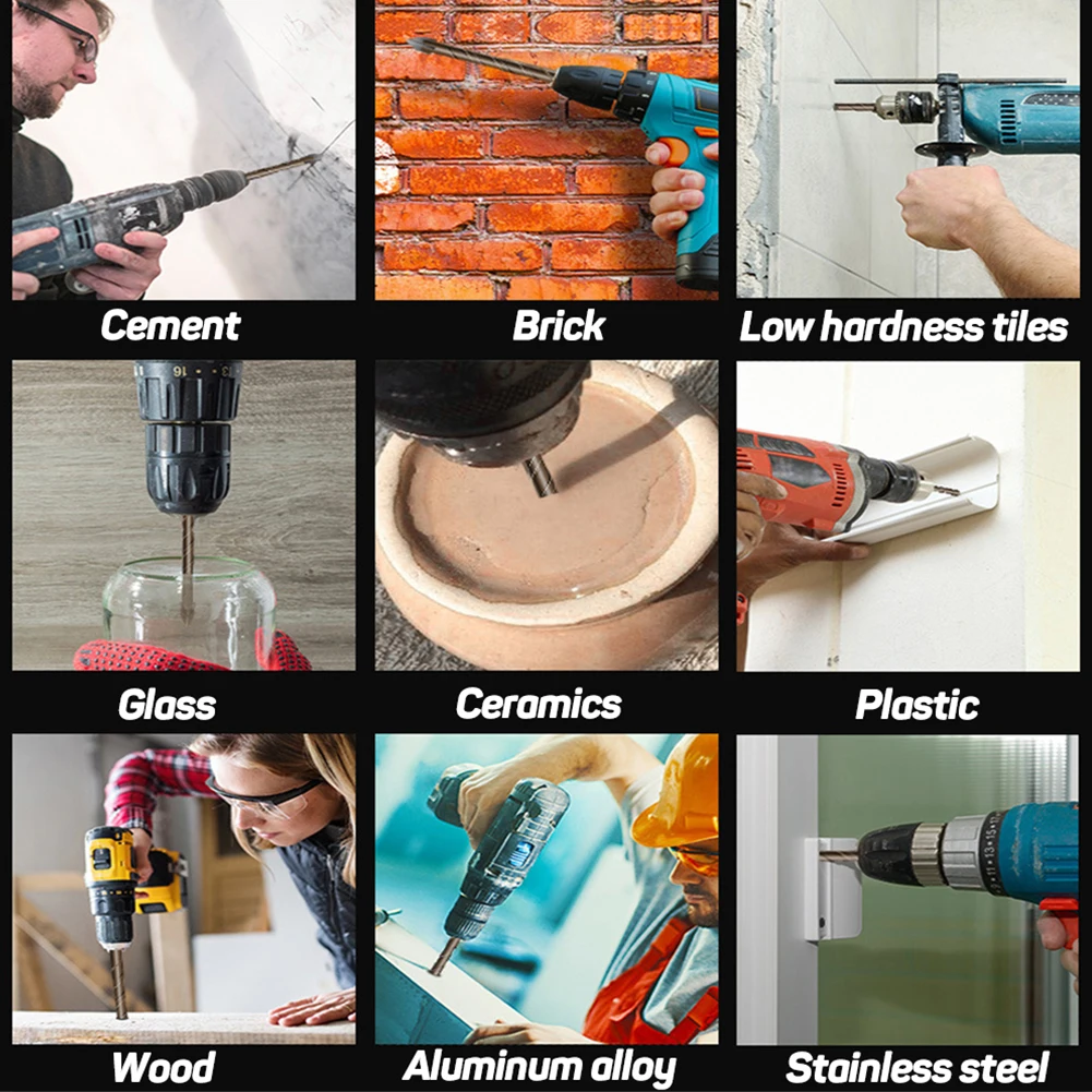 Особенности: * 1. Сплав с титановым покрытием обладает сильной прочностью и износостойкостью с длительным сроком службы. * 2. Спираль фрукта делает сопротивление разреза небольшим, чтобы увеличить скорость бурения. * 3. Сульфат магния технический твердосплавное точка с 4 режущими кромками, сверло диаметром 3/4/5/6/8/10/12 мм. * 4. 1/4 "шестигранный хвостовик может быть установлен в ручной дрели, электрической дрели. * 5. Подходит для керамики, гранита, плитки, камня, дерева, пластика, бетонной стены. Посылка включает в себя: 1 шт. сверло Или 7 шт. x (3 мм + 4 мм + 5 мм + 6 мм + 8 мм + 10 мм + 12 мм) сверло