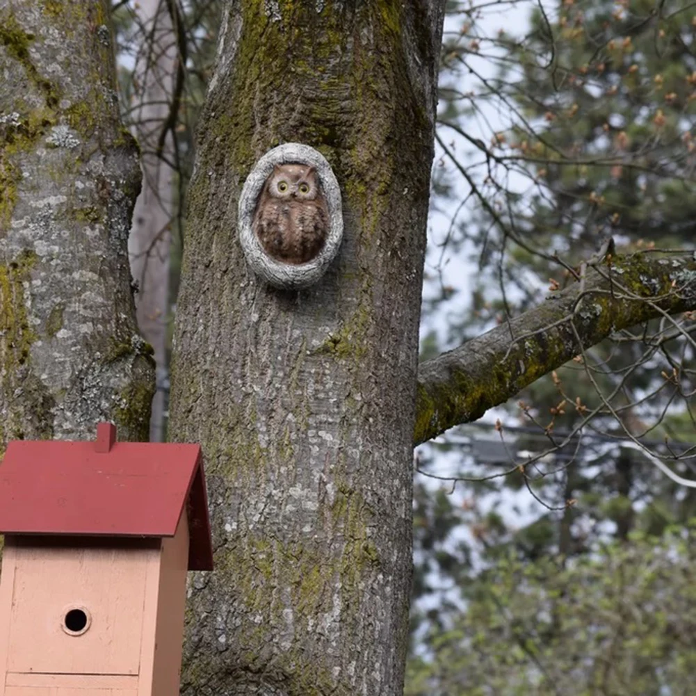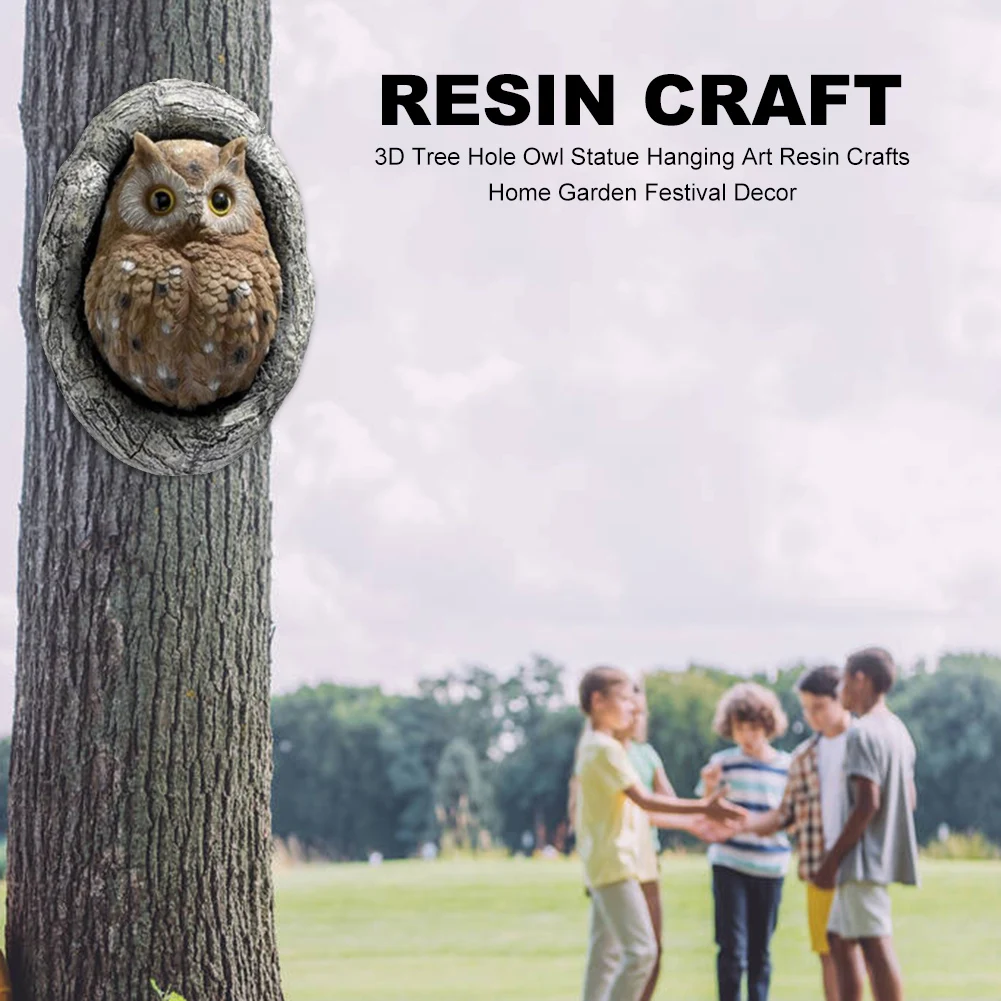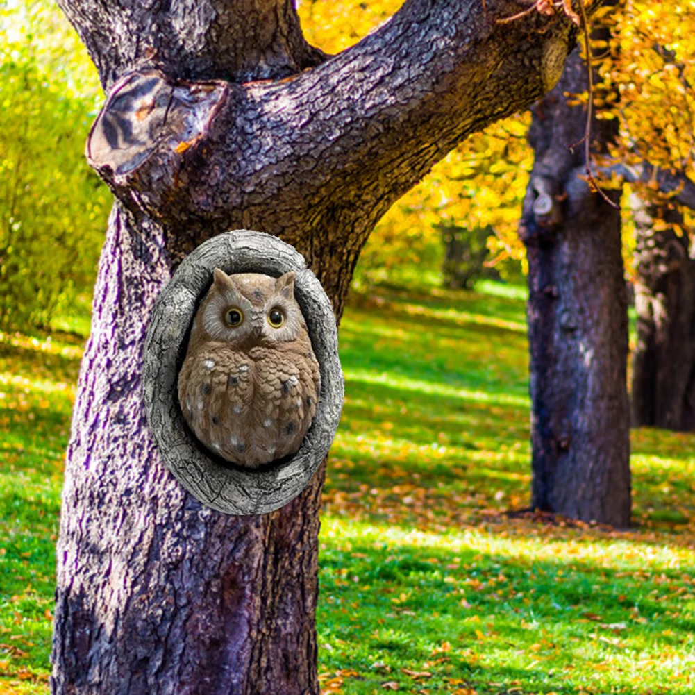 Имитация дерева отверстие сова статуя 3D висит искусство изделия из смолы скульптура украшения дома открытый сад фестиваль художественные украшения