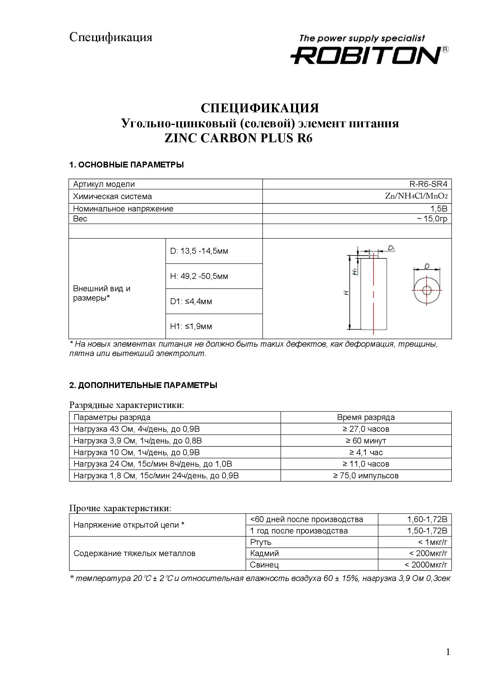 Спецификация:Солевой элемент АА Шринк-4