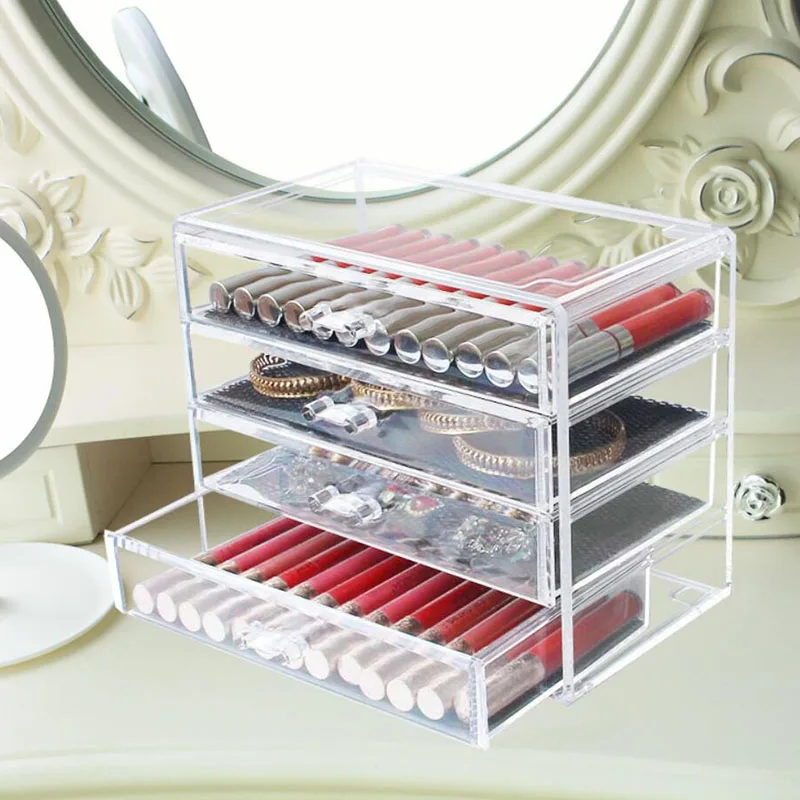 1. Acrylic cosmetics and makeup storage boxes (transparent, 4 drawers) organize all your cosmetics and cosmetics into a personalized beauty counter.