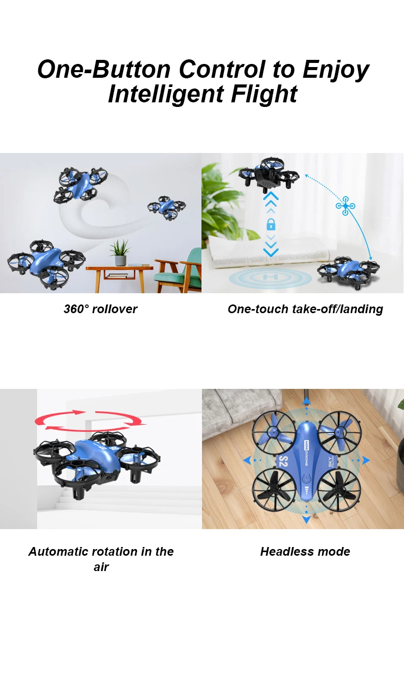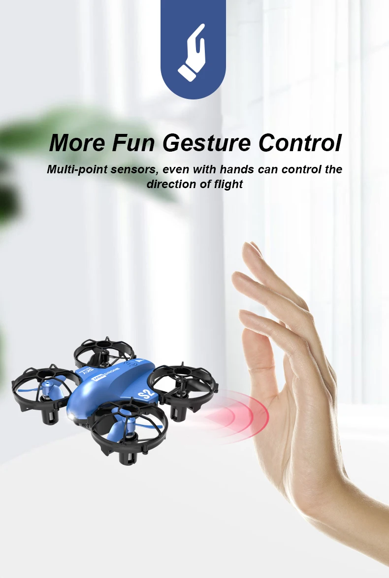 -Режим удержания высоты. Установив давление воздуха снаружи, Квадрокоптер может стабильно парить в воздухе.-2,4 ГГц Технология, принятая для защиты от помех.-С одним нажатием кнопки и функцией посадки легко садится на землю.-С функцией качения 360 °, датчиком жестов, функцией предотвращения препятствий
