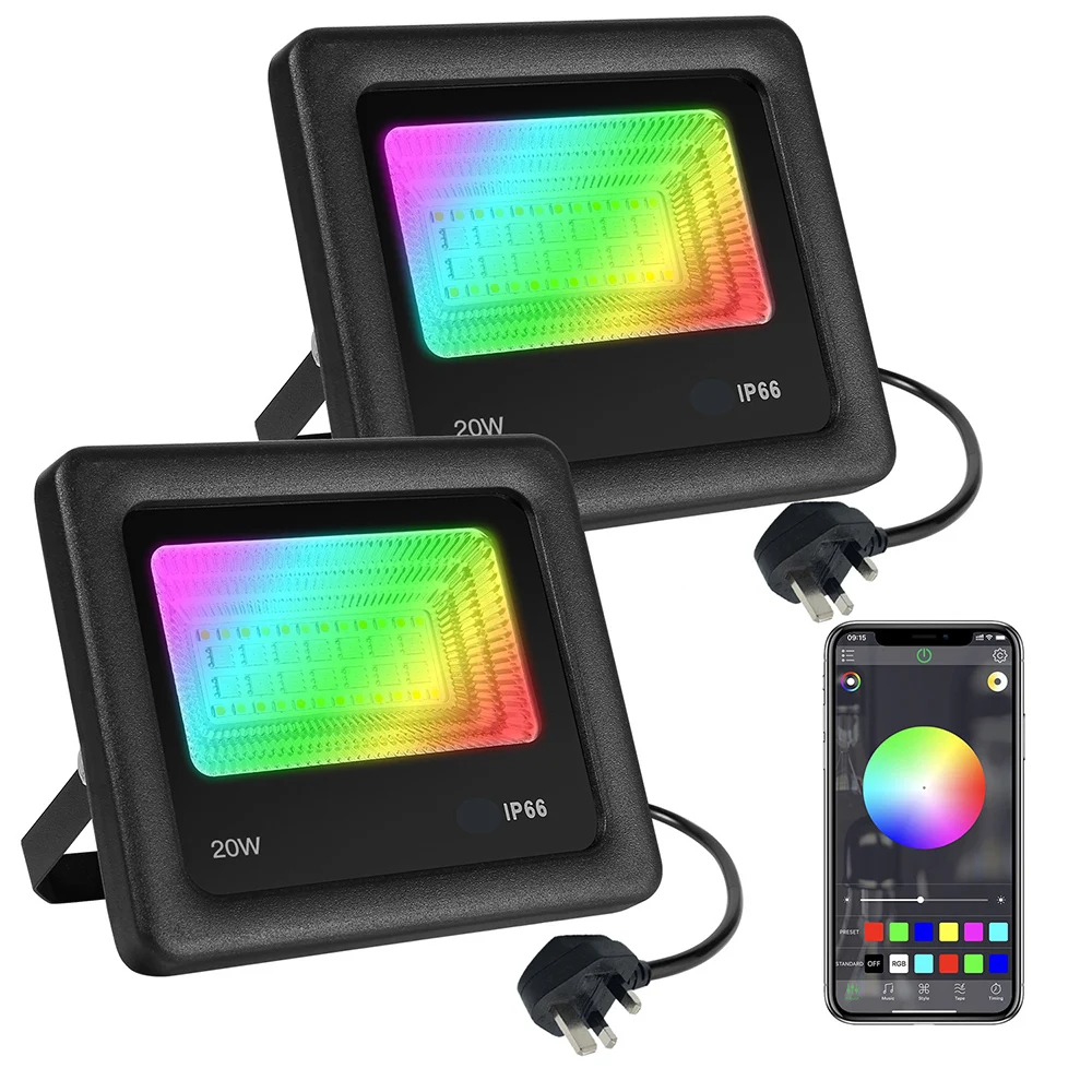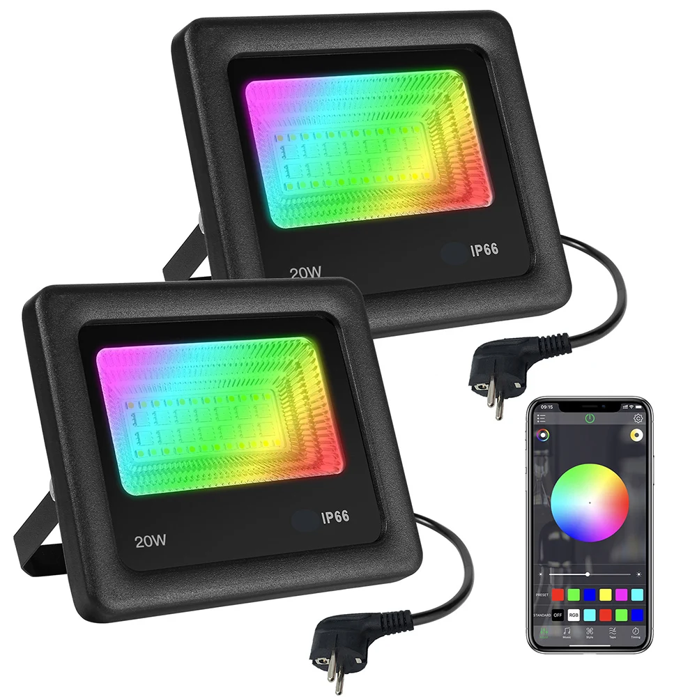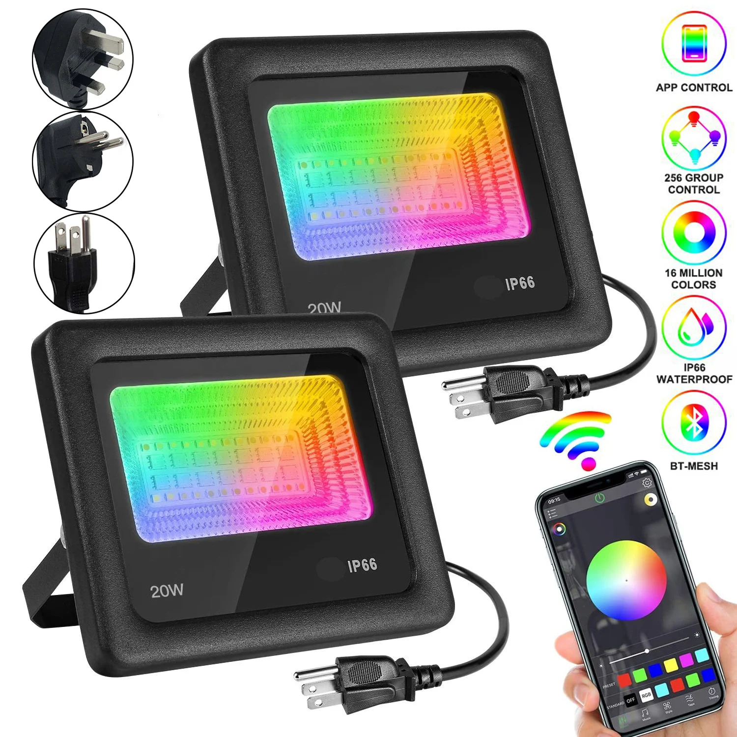 Светодиодные прожекторы 1-2 шт. RGB Изменение цвета 20 Вт Bluetooth управление через приложение IP66 водонепроницаемый открытый затемнения 16 миллионов цветов s 27 режимов для ландшафтного сада сцены свадебной вечеринки