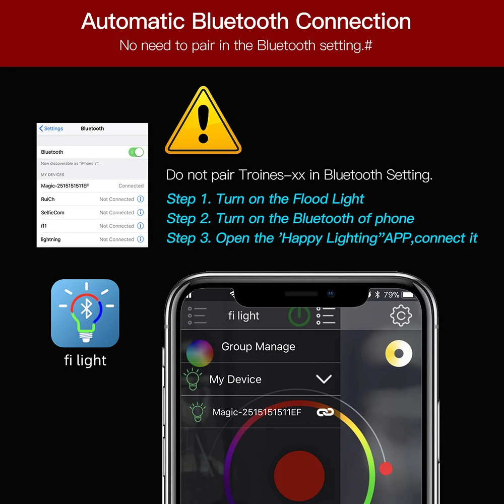 * Светодиодный светильник с умным управлением через BLUETOOTH: Используйте r, чтобы использовать свой телефон, чтобы контролировать светодиодный светильник, просто откройте bluetooth, затем отсканируйте qr-код, чтобы получить приложение, загрузите его и откройте, чтобы напрямую контролировать прожектор-светильник. Очень легко управлять, пользователь может установить его в сад, класс водонепроницаемости IP66, пользователь может управлять светильник, даже если в дождливые дни.