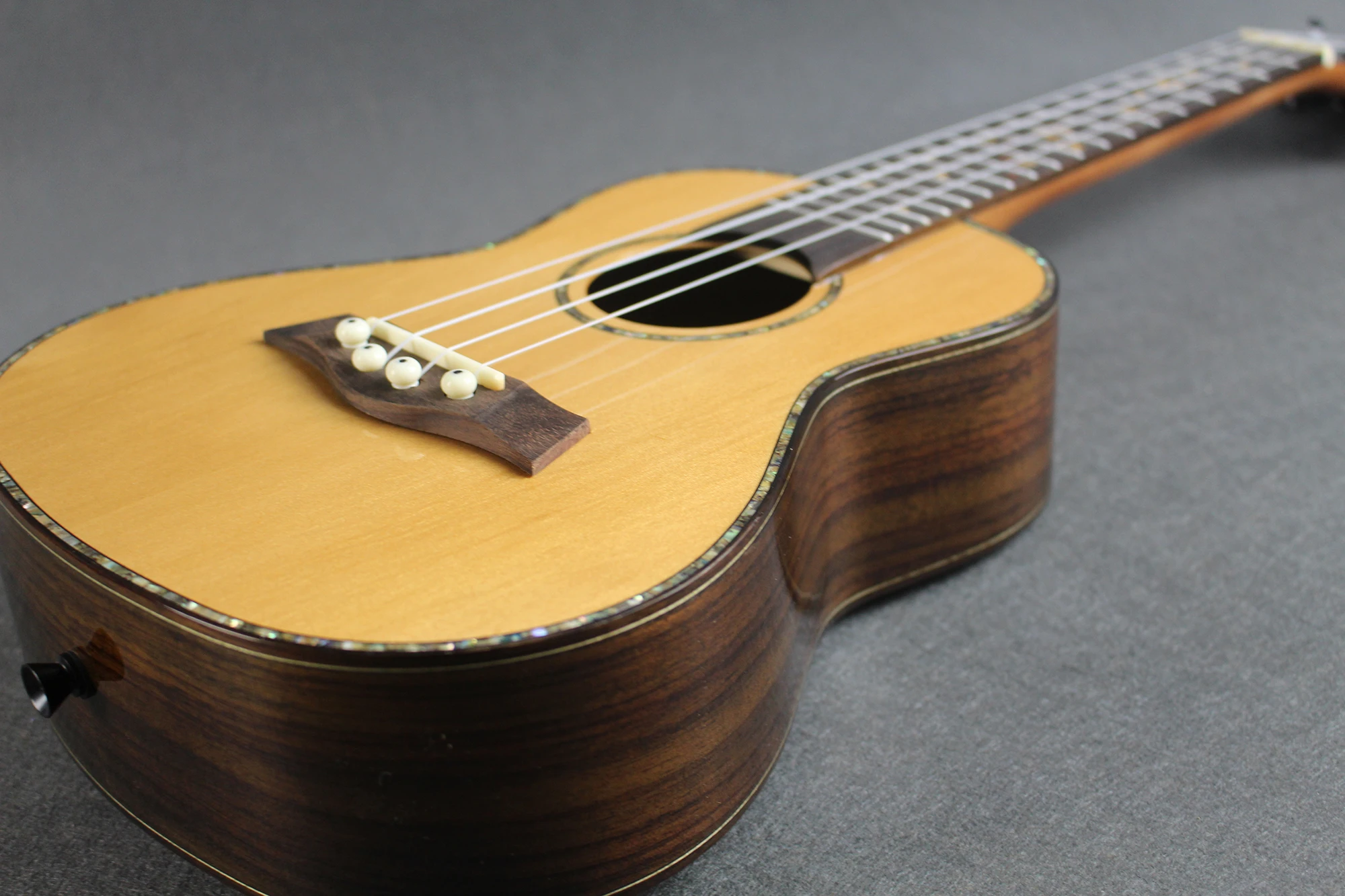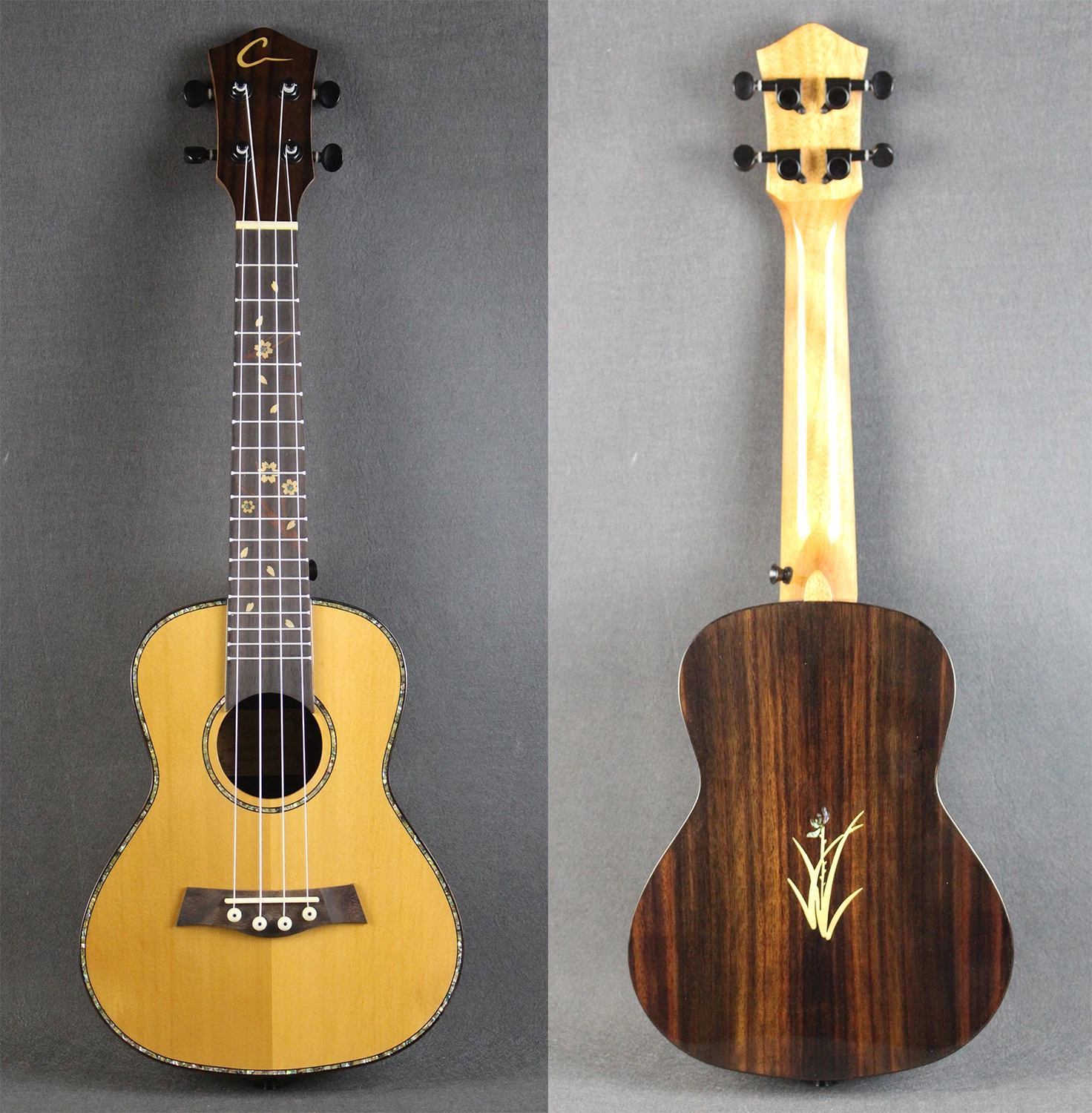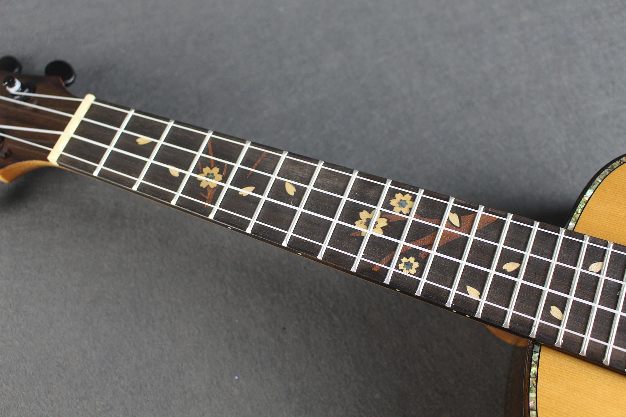 Product Description Size:Concert Top: Solid Spruce Back and Side: Solid Rosewood Fingerboard: rosewood & beautiful flower inlay String:Carbon string Neck: Mahogany Finish: glossy Case: Hard EVA case One of three random colors Ukulele is packed by Hard EVA case and outside with hardpaper box, very strong picking.
