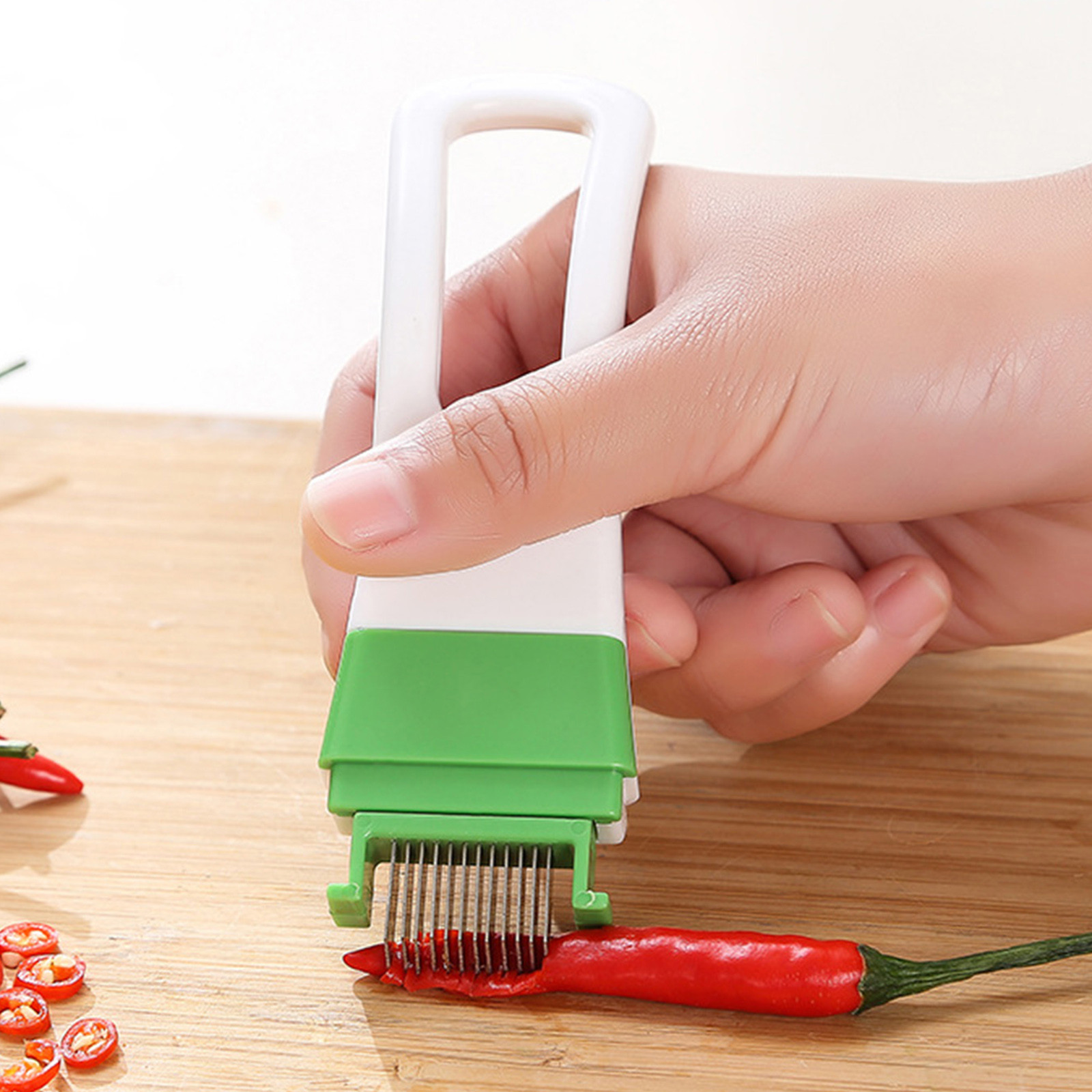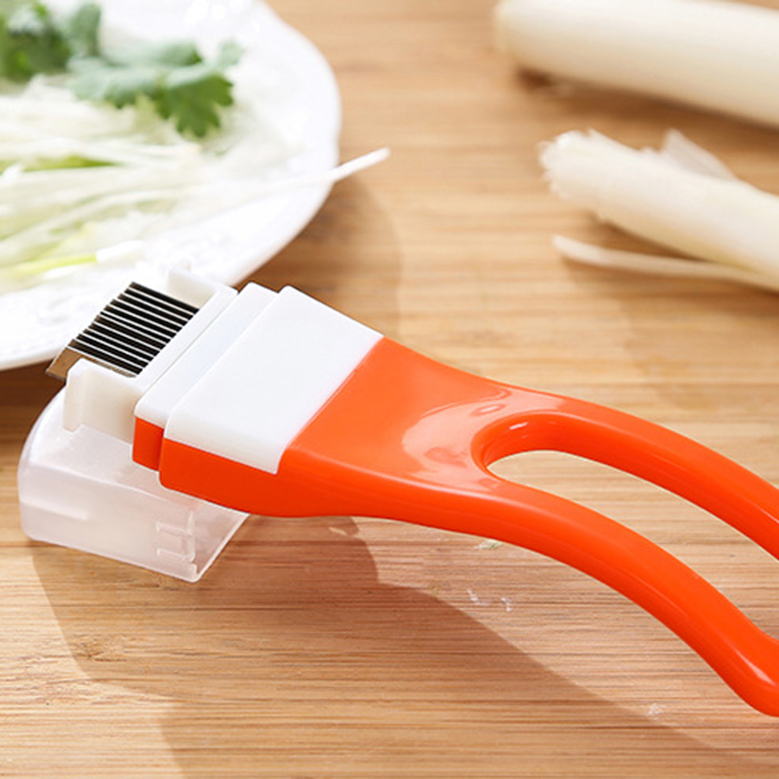 Расстояние между каждым стальным ножом одинаковое, вы можете быстро и равномерно разрезать лук-шелк и лук-секции.