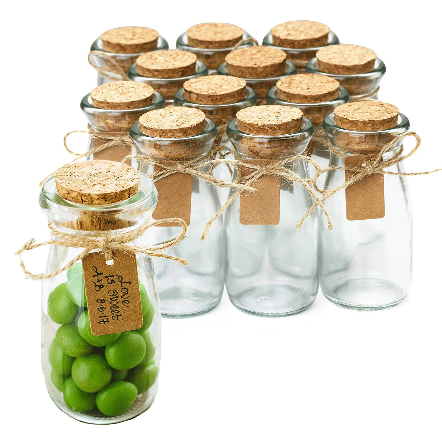 Этикетки и ленты: бумажные этикетки и веревки для удобной идеальной презентации и персонализации! Легкое изготовление свечей: Наши контейнеры в форме молочной бутылки достаточно широкие, чтобы обрабатывать тепло с достаточной высотой, чтобы покрыть фитиль и пламя для небольших домашних свечей. Широкая горловина: диаметр 30 мм для наполнения без суеты для таких мелких изделий, как конфета, с толстыми пробковыми колпачками, которые легко помещаются, чтобы ваши лакомства оставались на месте и выглядели очаровательно Сверхмощное стекло: сделано из 3 мм толстого высококачественного белого прозрачного стекла. Сильный и привлекательный, идеально подходит для DIY подарков и домашних ремесел, таких как свадебные сувениры, вечеринки, свечи, бутылки для специй и многое другое! Душевное спокойствие: в первую очередь вы будете довольны своей покупкой! Если у вас есть какие-либо вопросы или проблемы, пожалуйста, не стесняйтесь связаться с нами, и ответ будет предоставлен быстро!